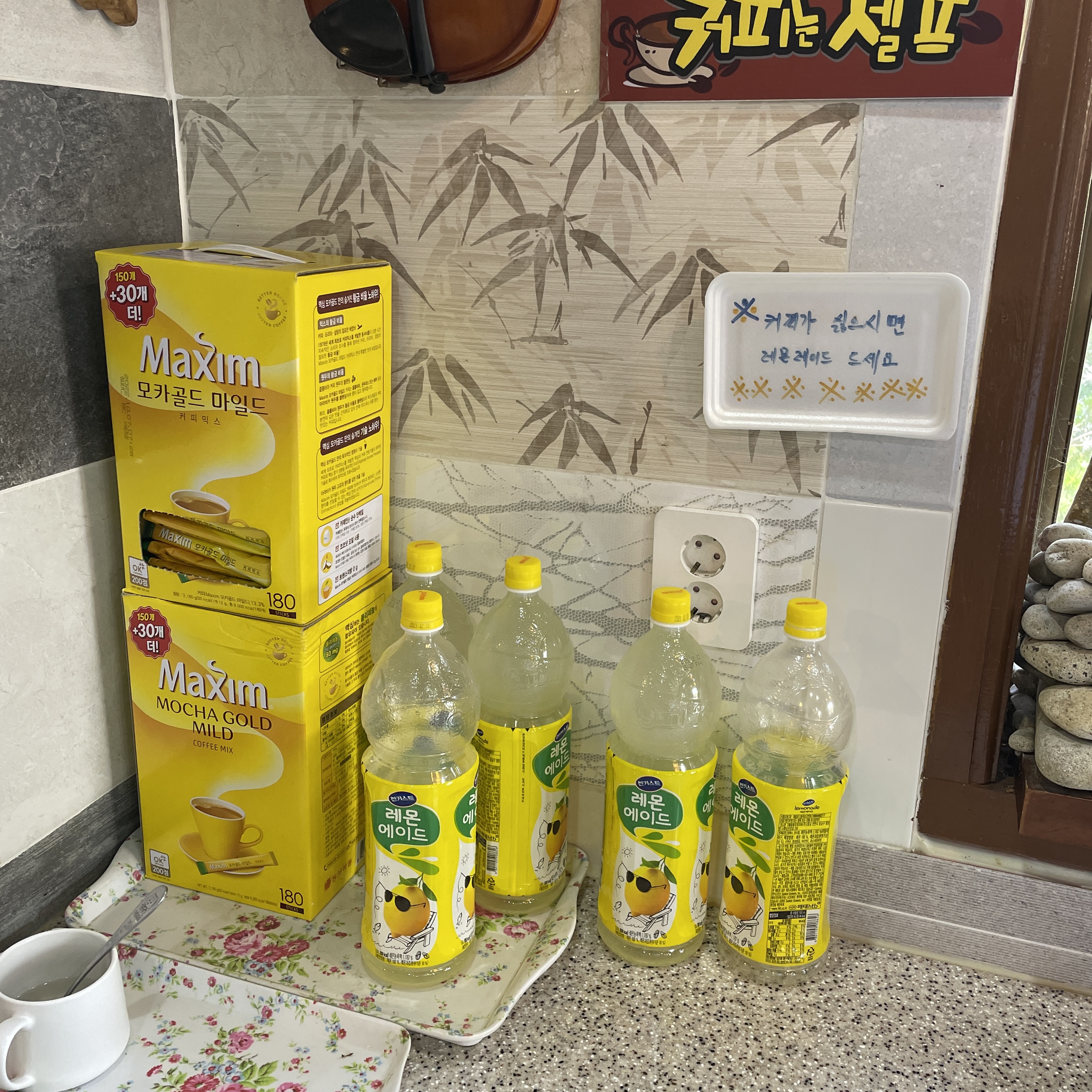 커피를 안 마시는 고객을 위한 레몬에이드 서비스.