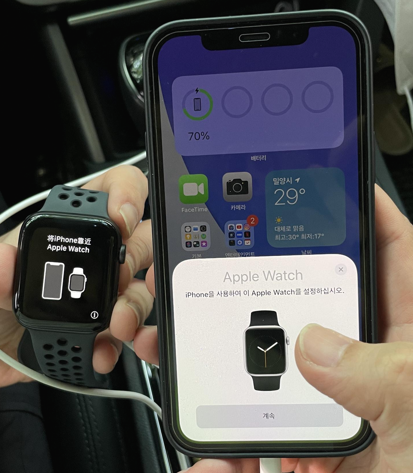 1. 아이폰에서 애플 워치가 있다는 것을 알려줍니다.