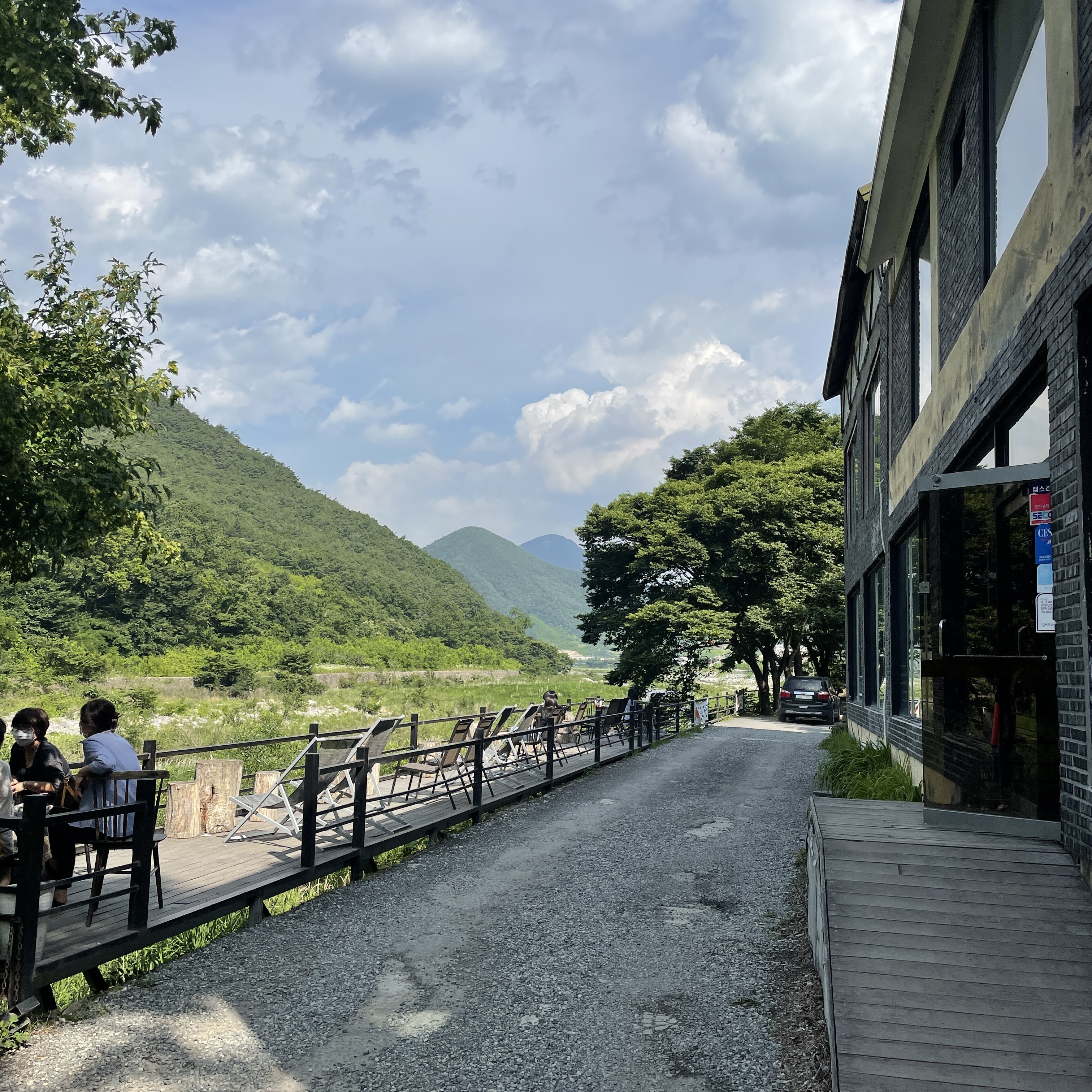 단장천을 마주보는 곳에 카페가 위치하고 있습니다. 입구가 도로가 옆 샛길로 내려가면 위치하고 있으니