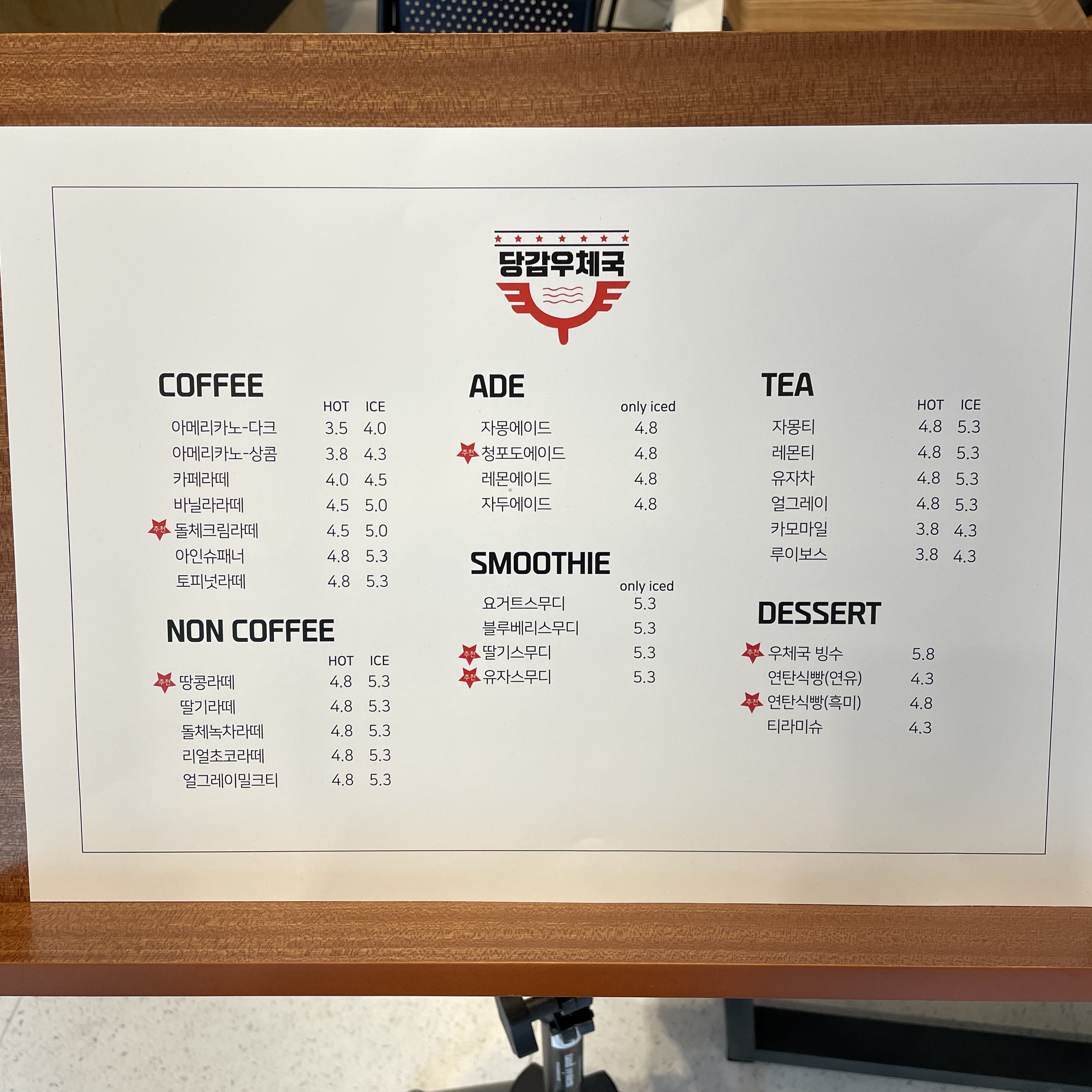 메뉴판이 굉장히 우체국 느낌이에요.