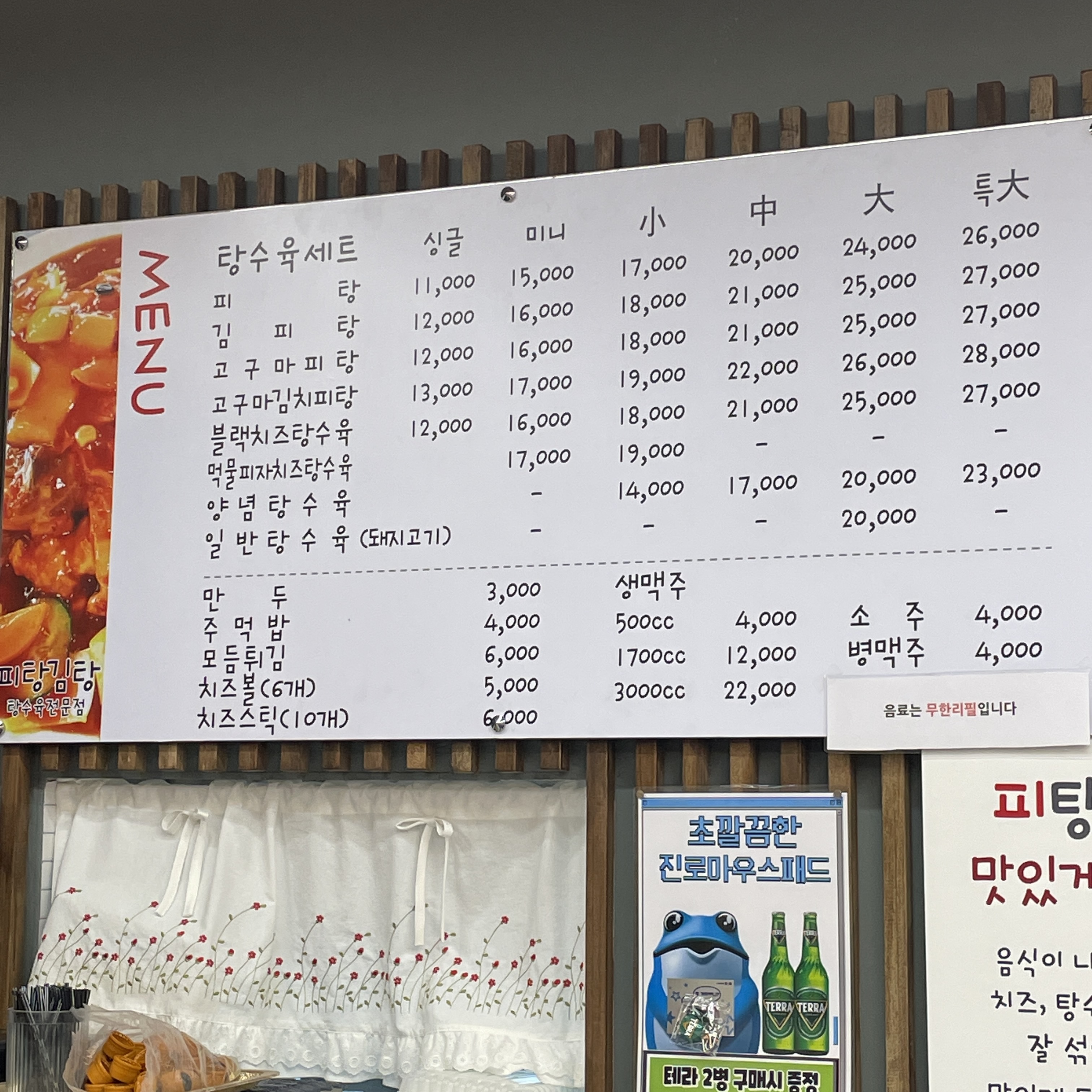 탕수육 종류가 무려 8개에... 사이즈가 6가지네요...