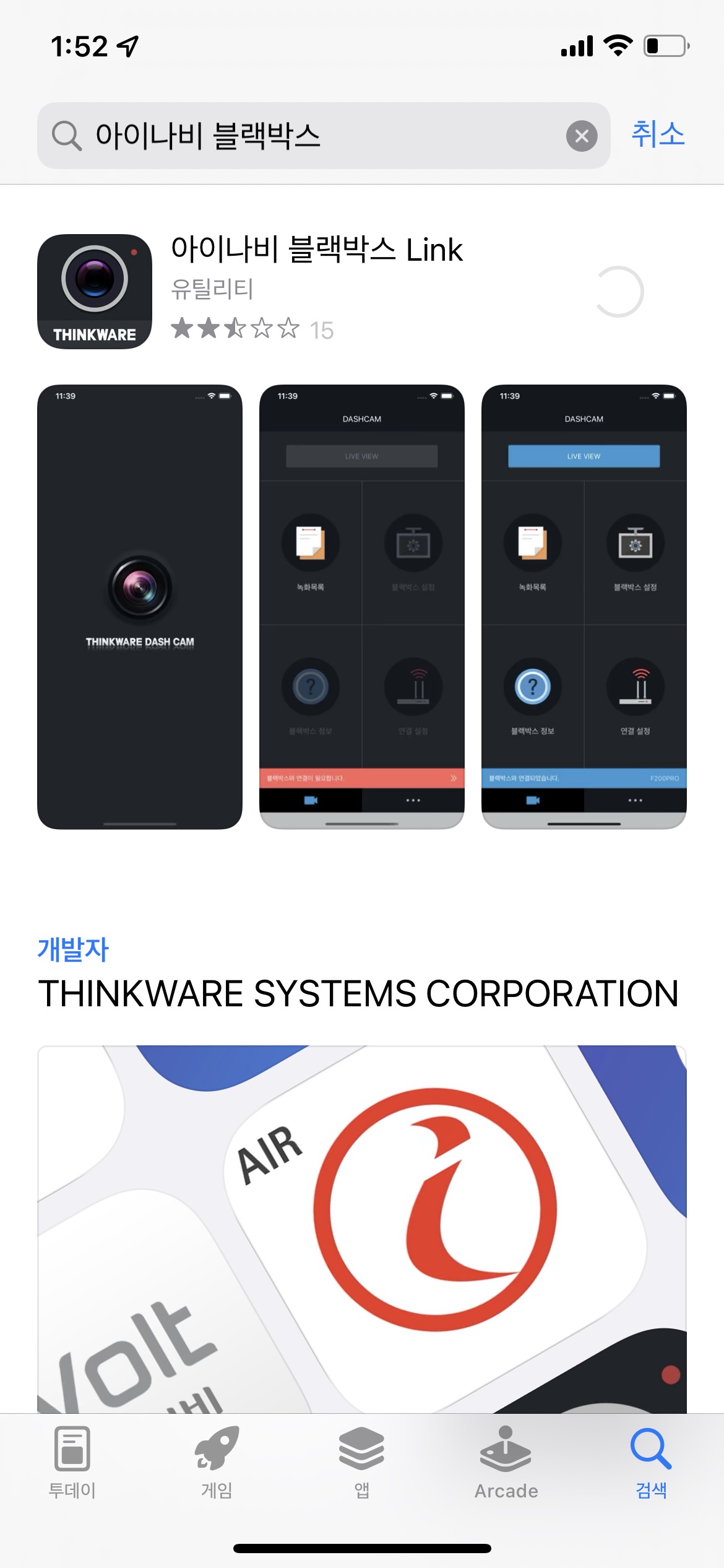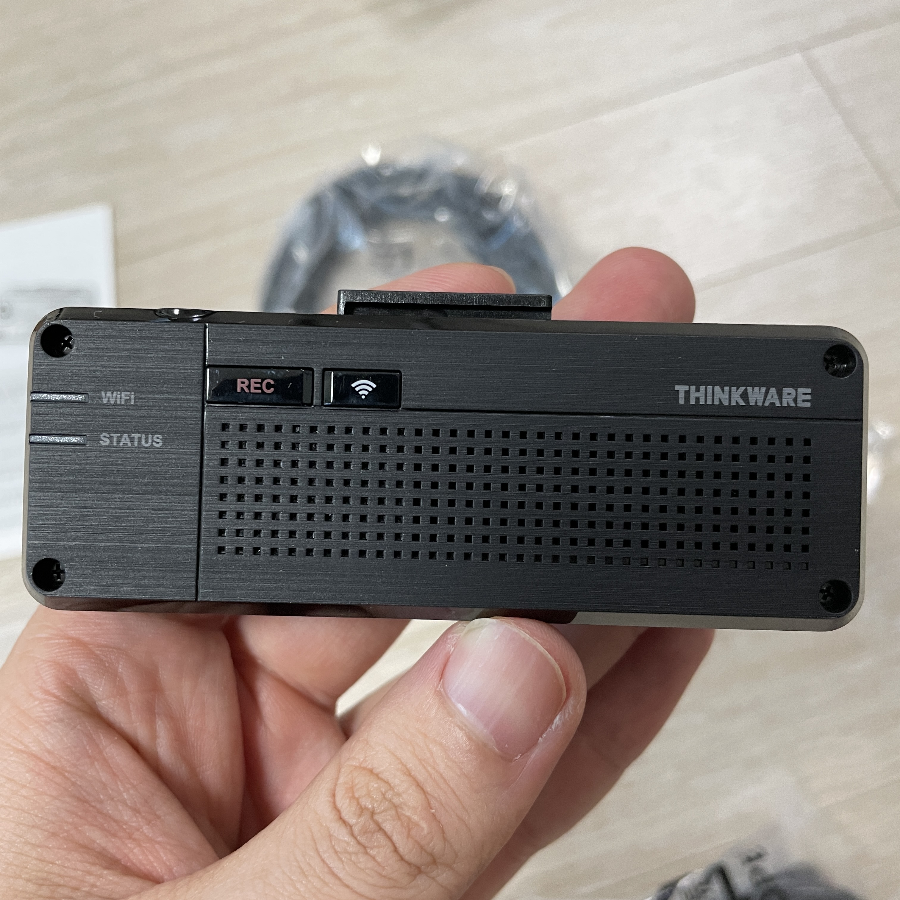 차량의 블랙박스의 와이파이 버튼을 눌러 핸드폰에서 Thinkware 와이파이를 잡아줍니다.