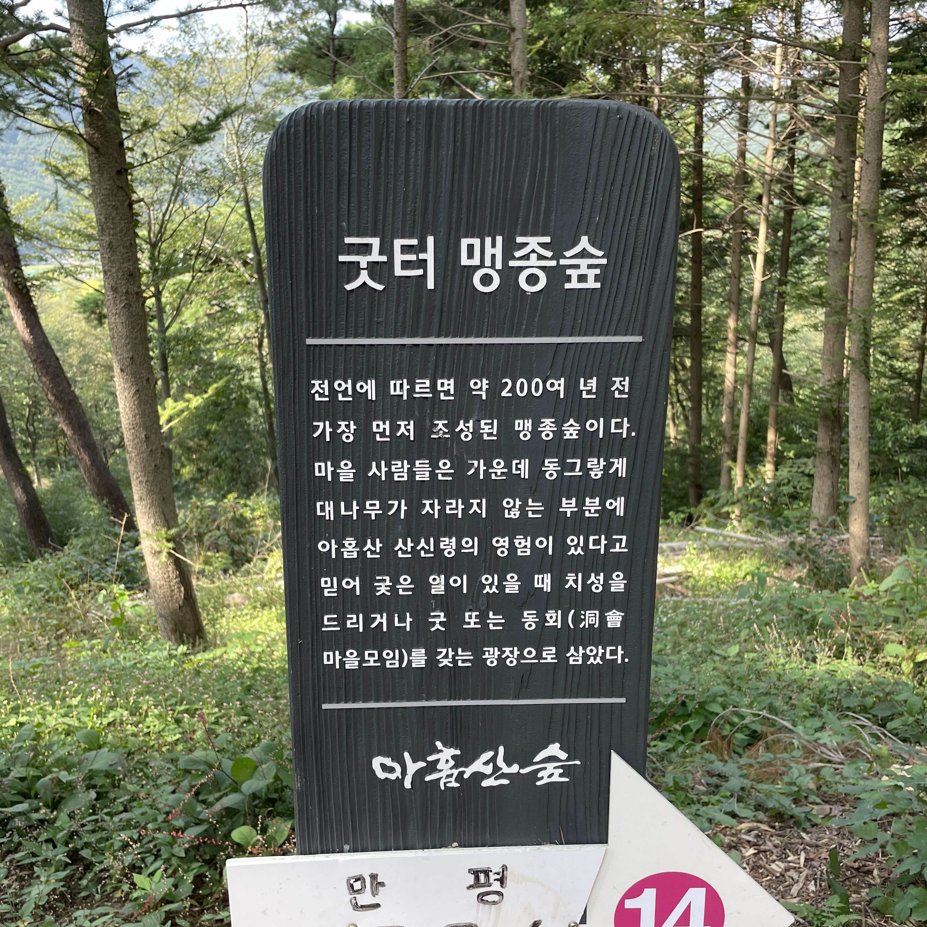 옛날부터 이곳에만 대나무가 자라지 않아 숲을 보호하는 신이 있는 곳이라 하여 굿을 하곤 했다네요.