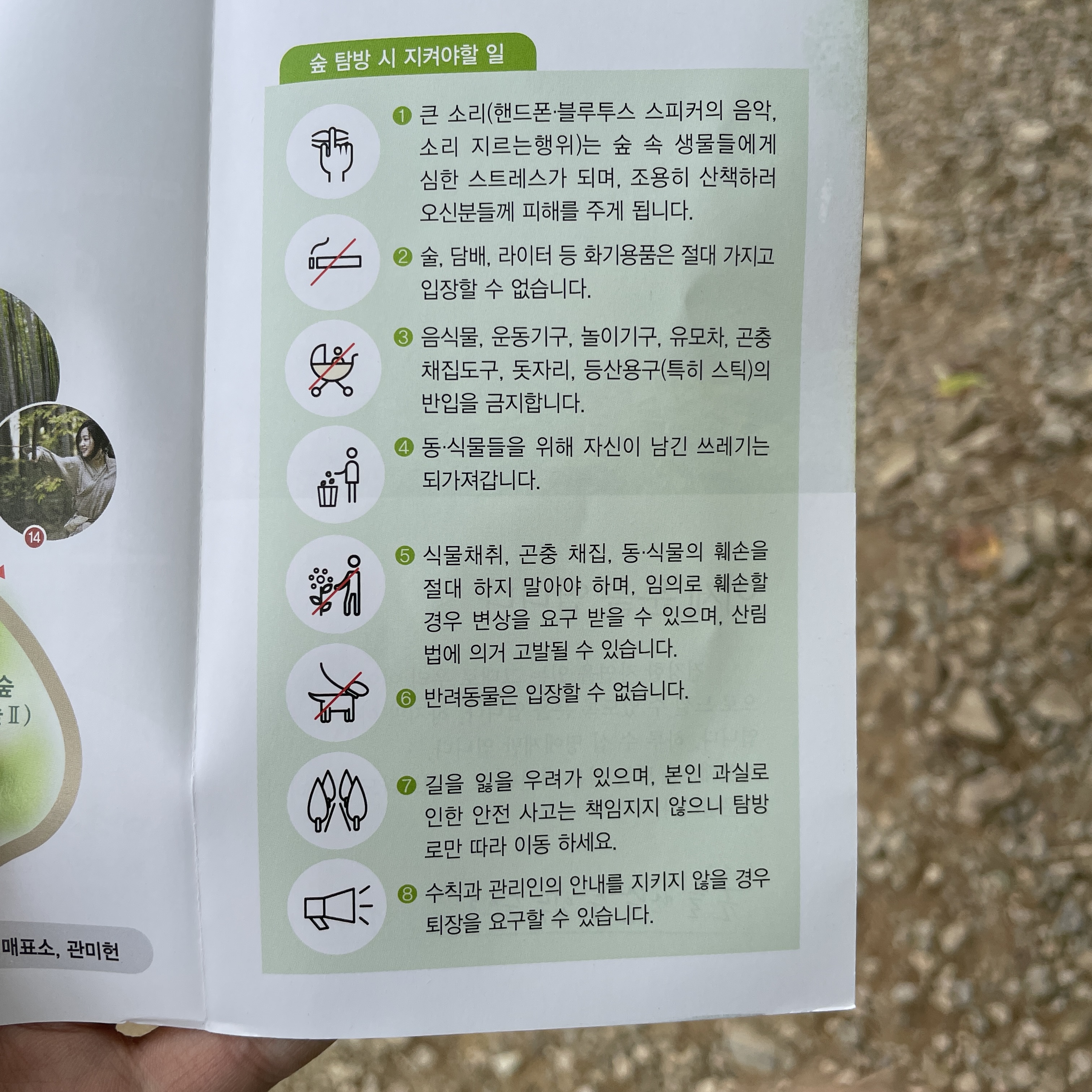 팜플렛은 아홉산 숲의 규칙들이 적혀 있어요.