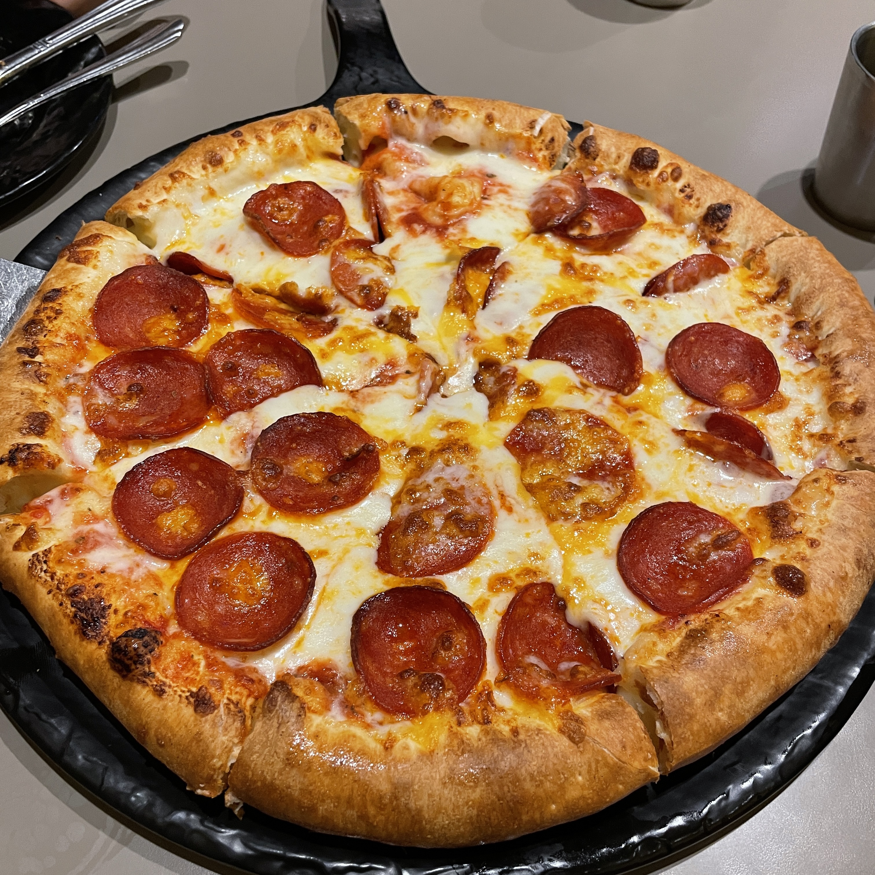 저희는 남자 셋이서 피자집을 왔기 때문에 피자의 근본 페퍼로니 피자 라지, 스파게티를 주문했습니다.