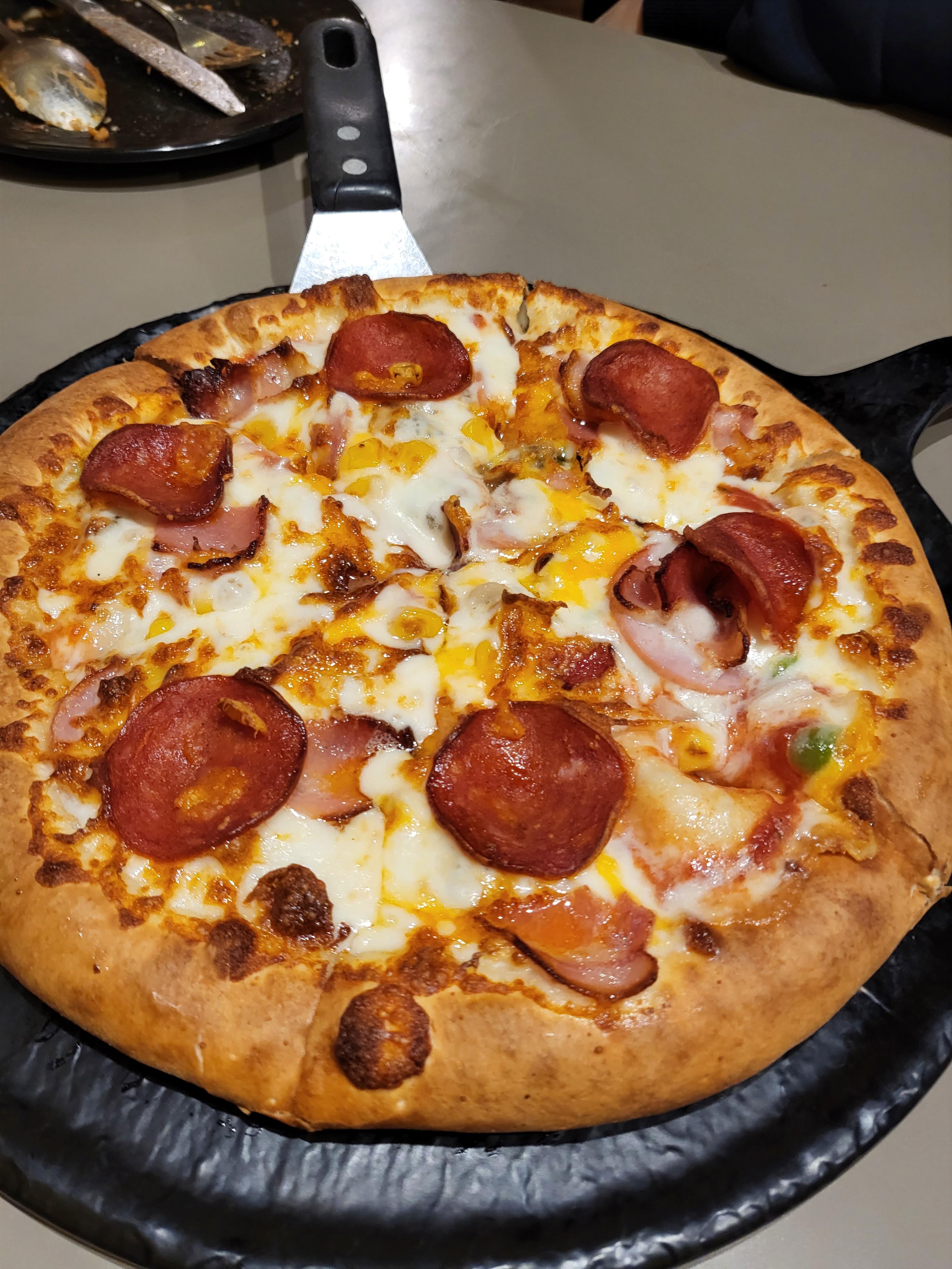 라지 사이즈 피자라서 생각보다 사이즈가 컸어요.