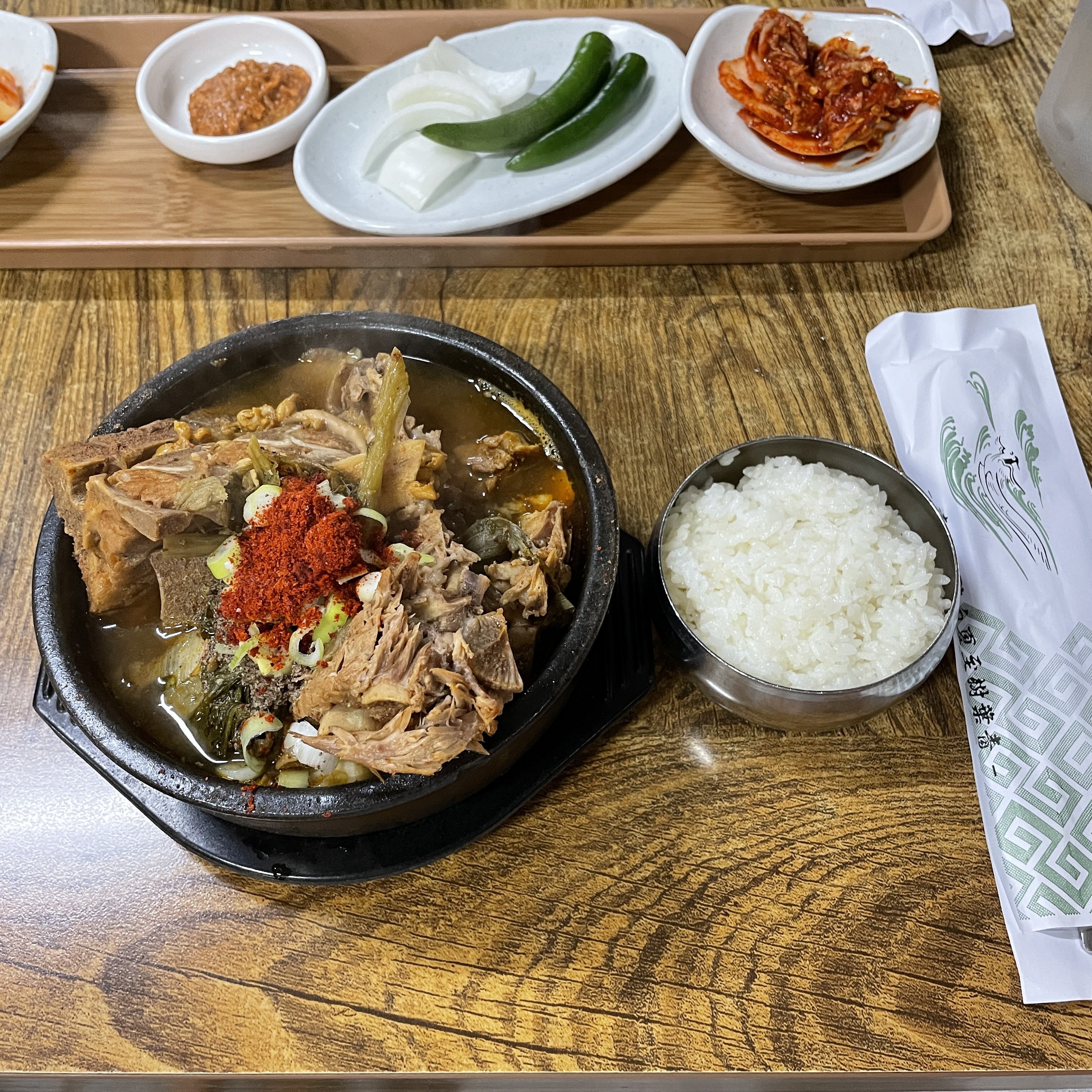 짜잔! 잠깐 기다리면 이렇게 뼈다귀 해장국이 세팅이 됩니다.