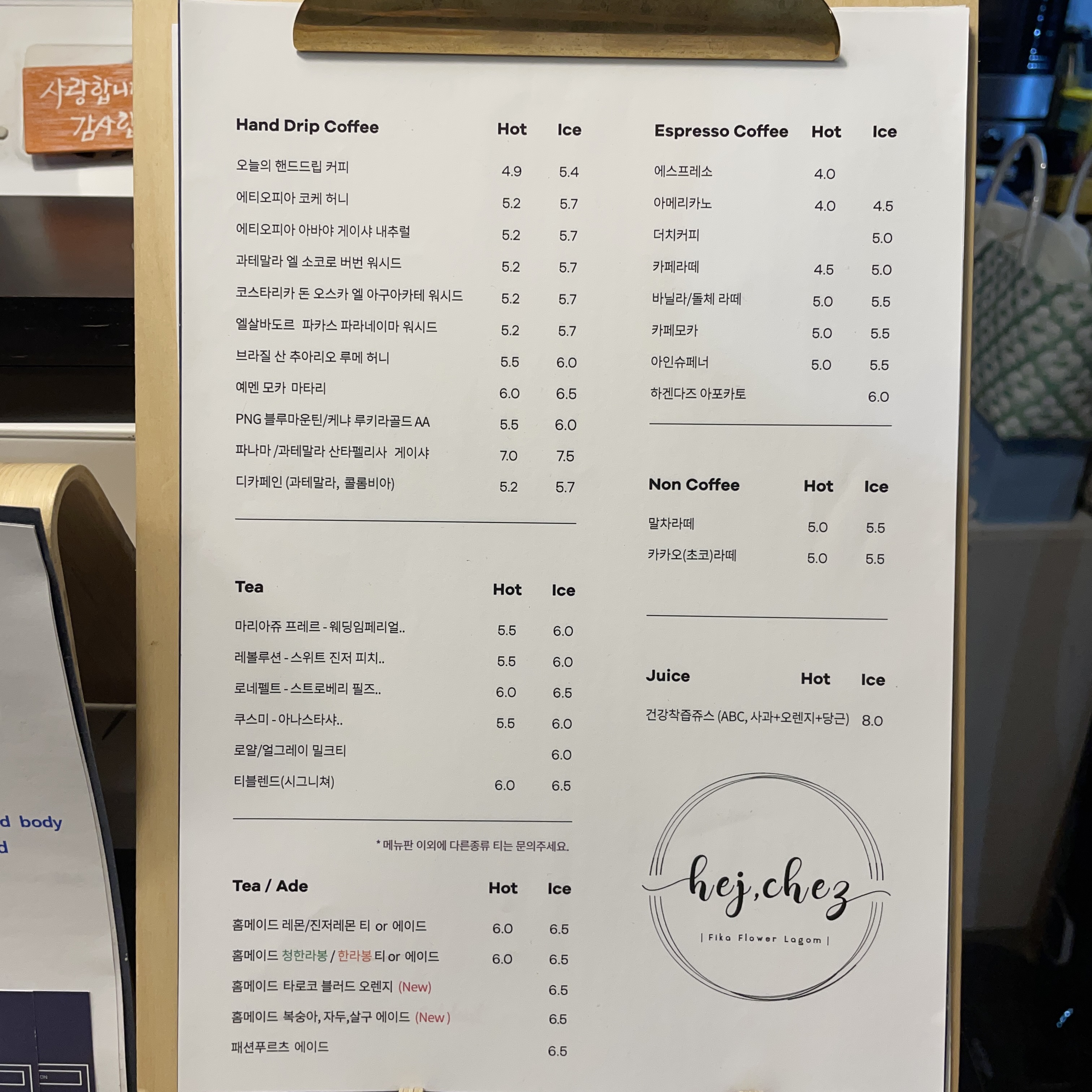 내가 가장 마음에 드는 자리를 정하고 있으면 사장님께서 음료를 가져다주십니다.