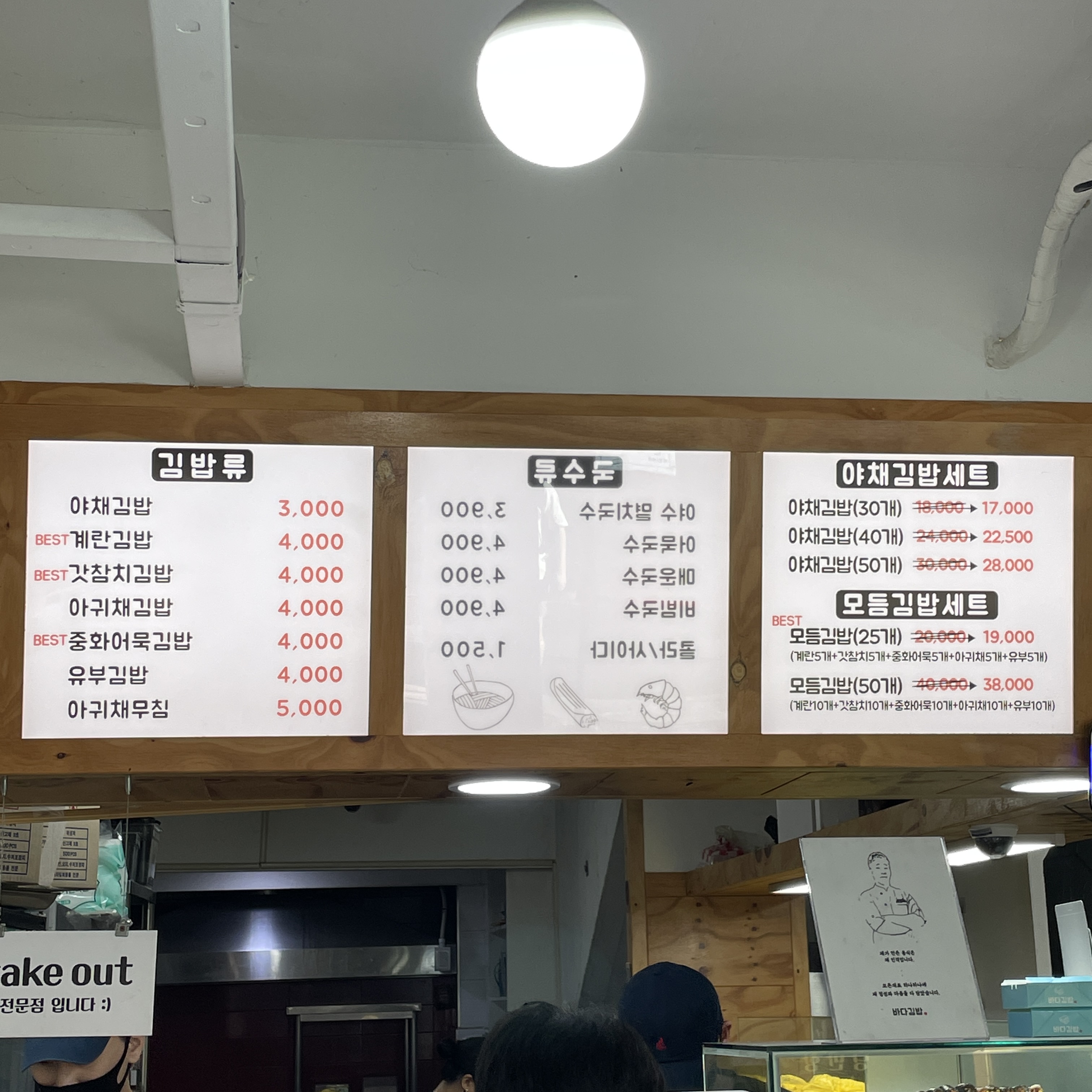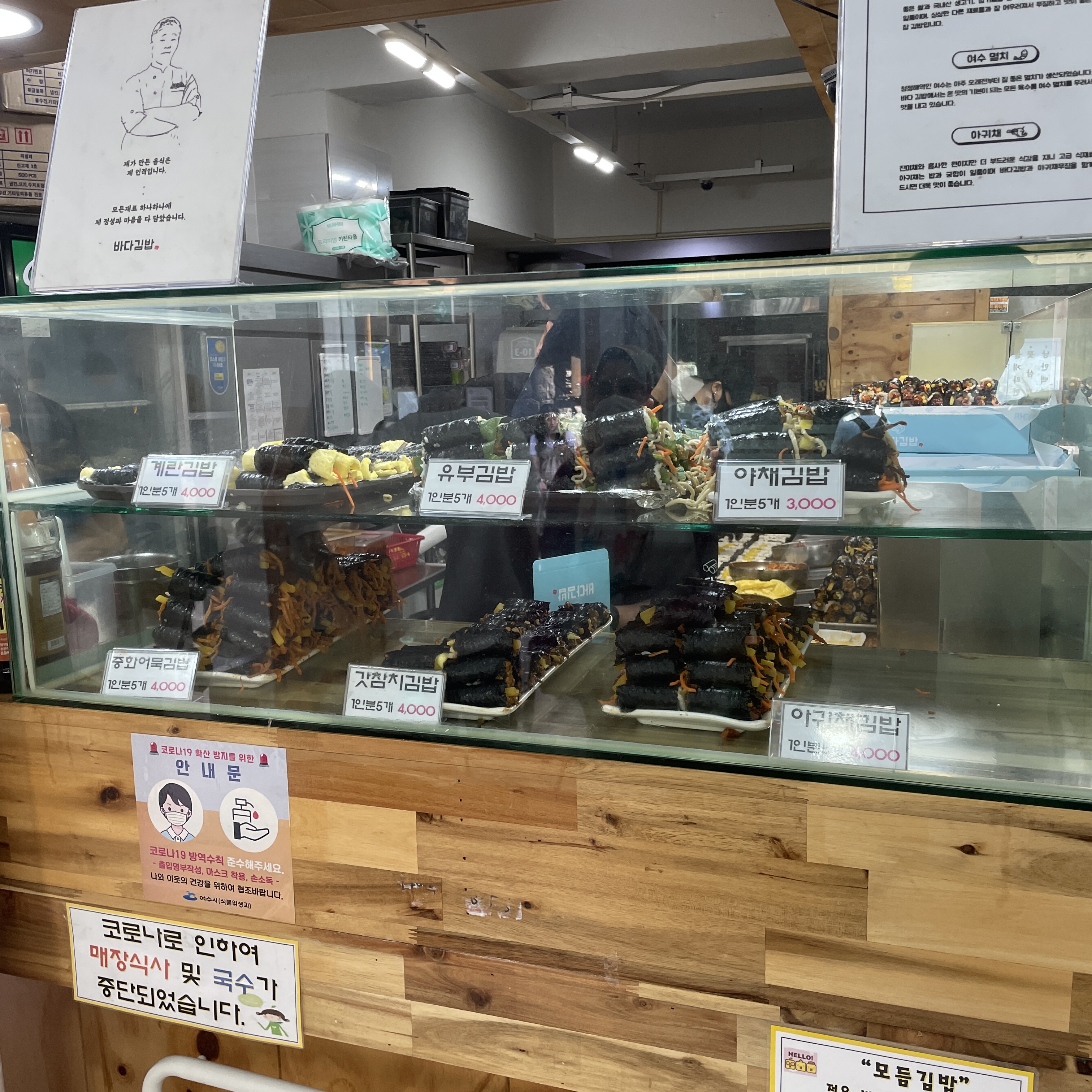 여수 바다 김밥 메뉴예요.