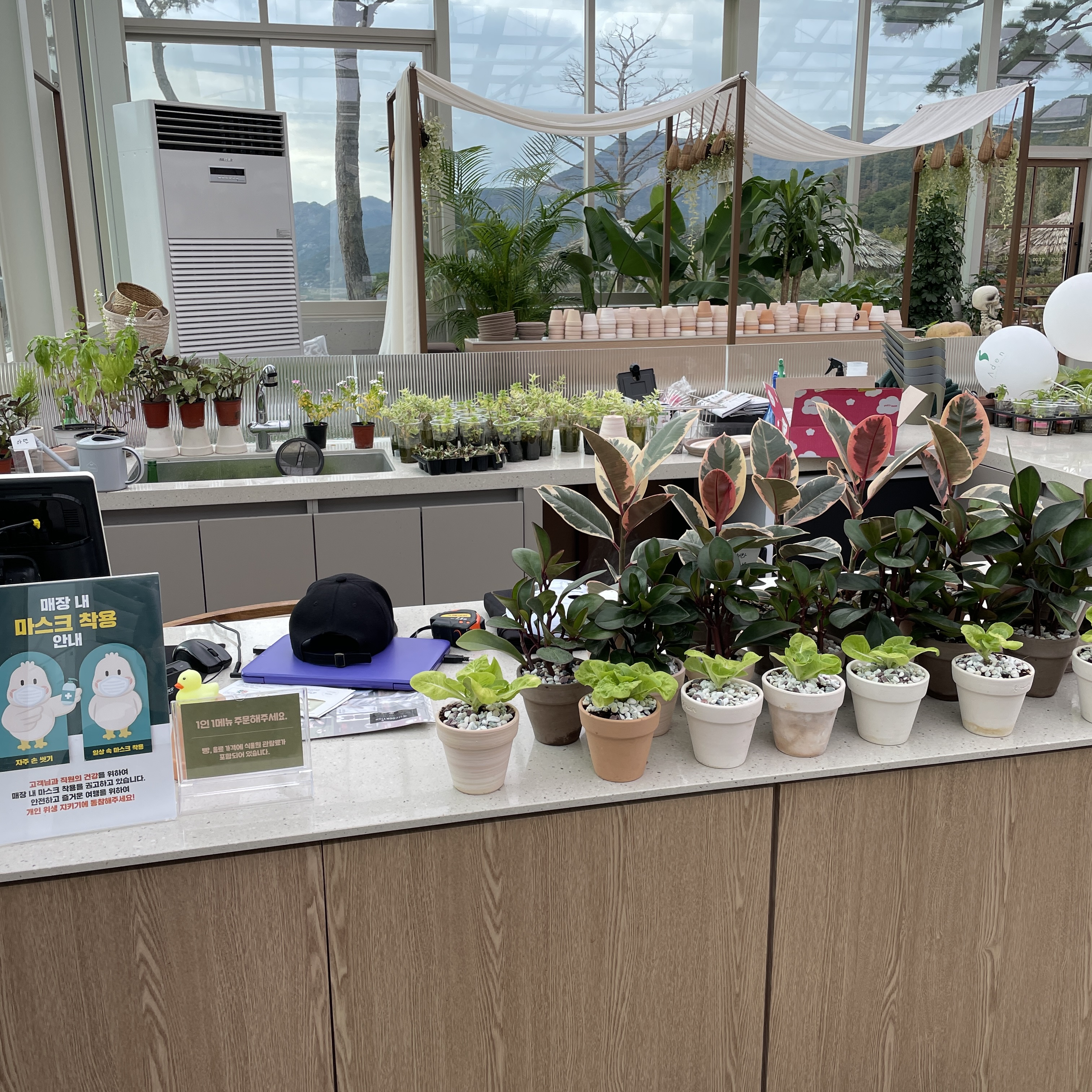 음료를 주문할 수 있는 공간은 식물원 뒤쪽에 마련되어 있어요.
