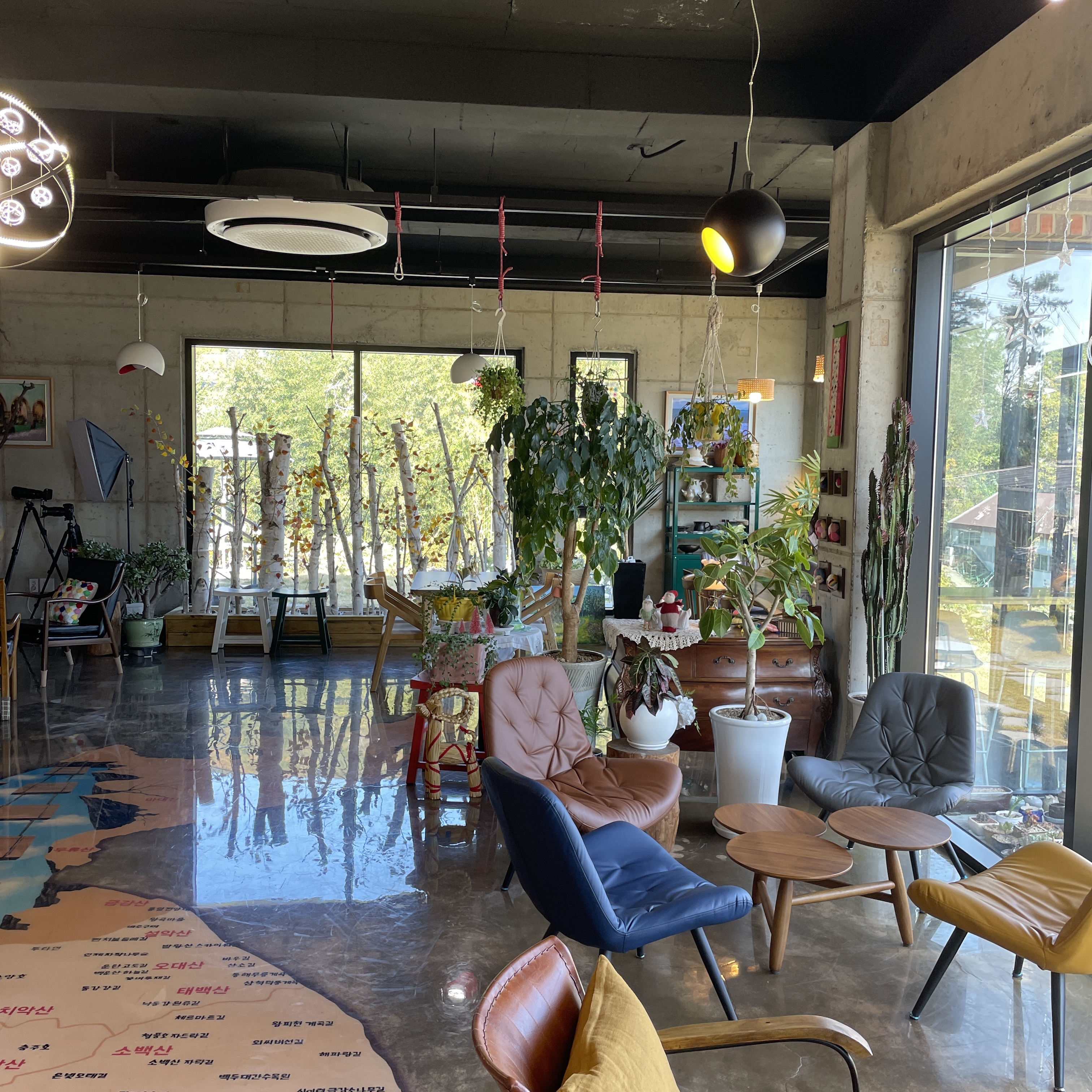 사장님께서 트래킹을 엄청 좋아하시는지 바닥에는 커다란 트래킹 지도가 있었어요.