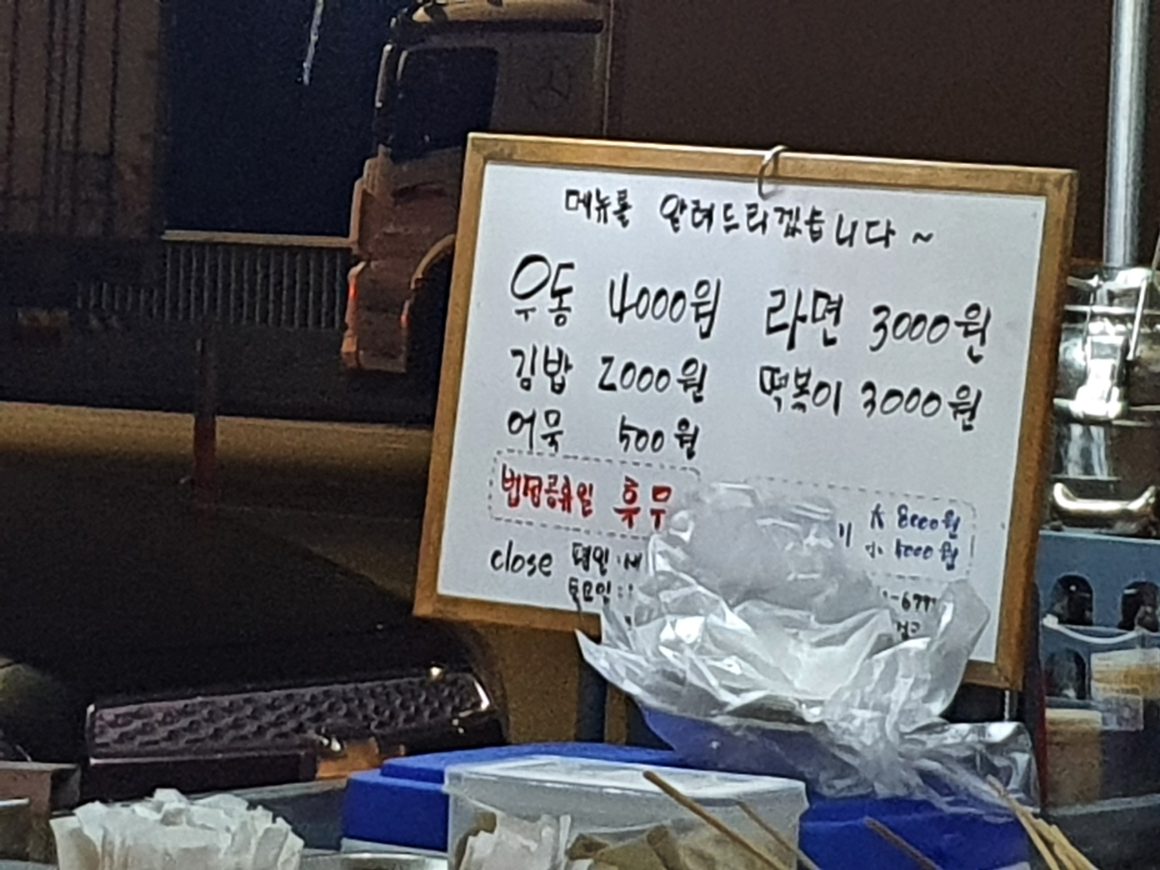 보통 옆 테이블에는 우동 한 그릇과 김밥을 주로 드셨어요, 그리고 역시 라면...