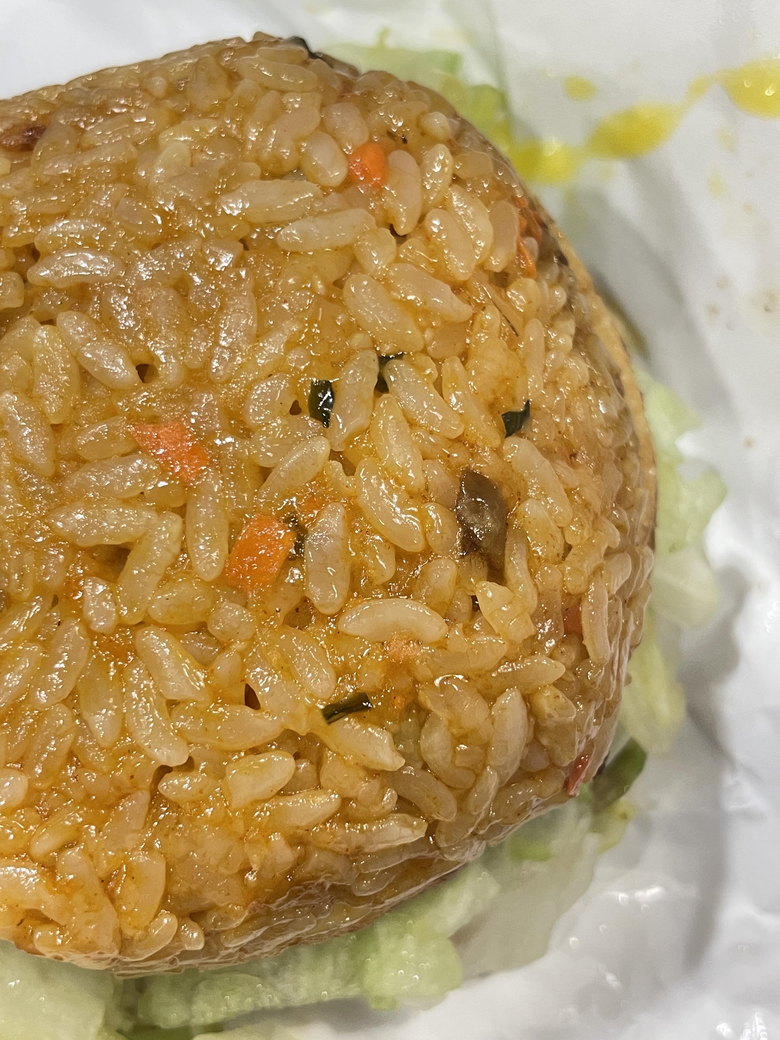 아삭한 양상추와는 다르게 떡과 비슷한 밥알의 느낌이 마치 떡에 양상추를 싸서 먹는 그러한 느낌.
