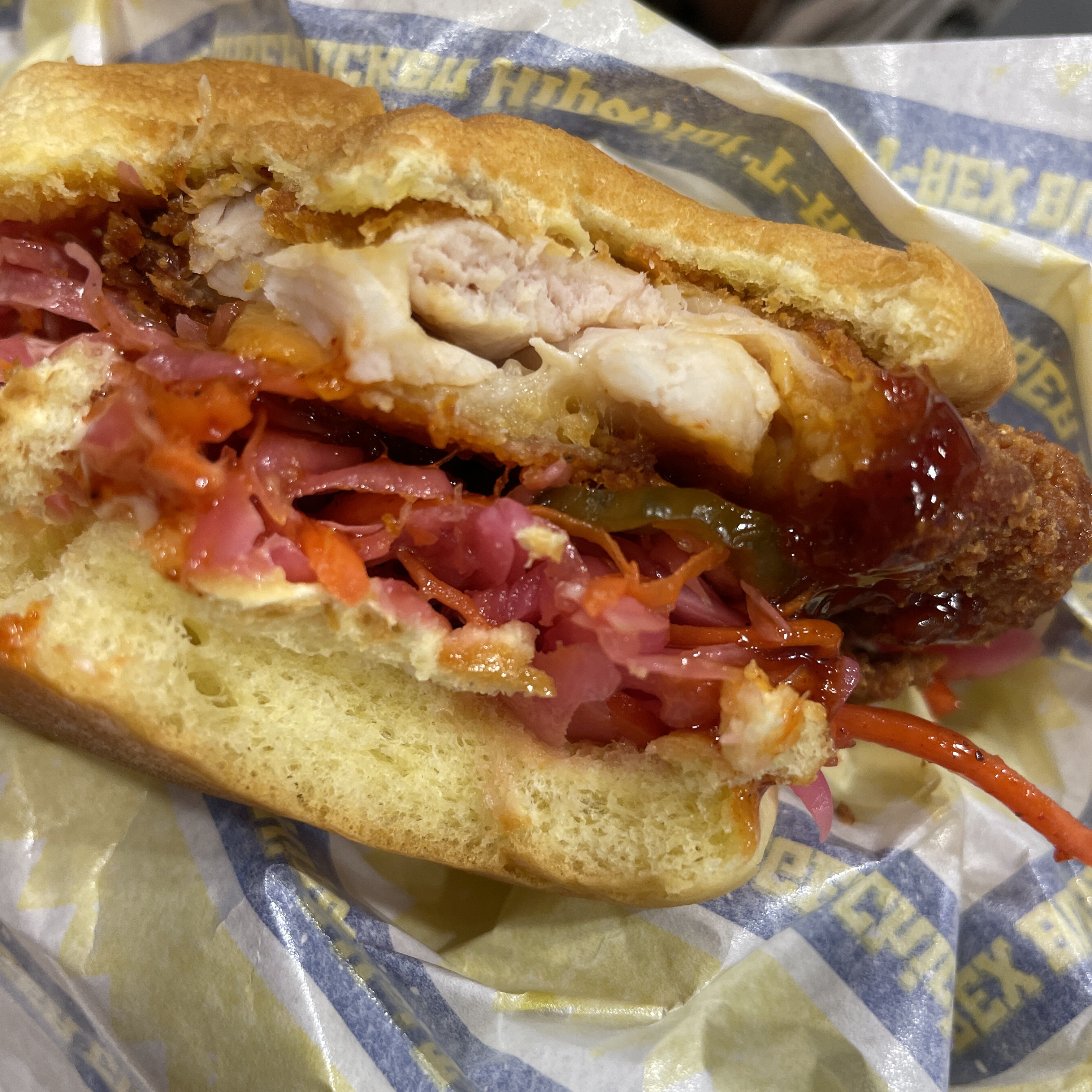 그리고 바로 다음 타자인 힙&핫 치킨버거 한 입