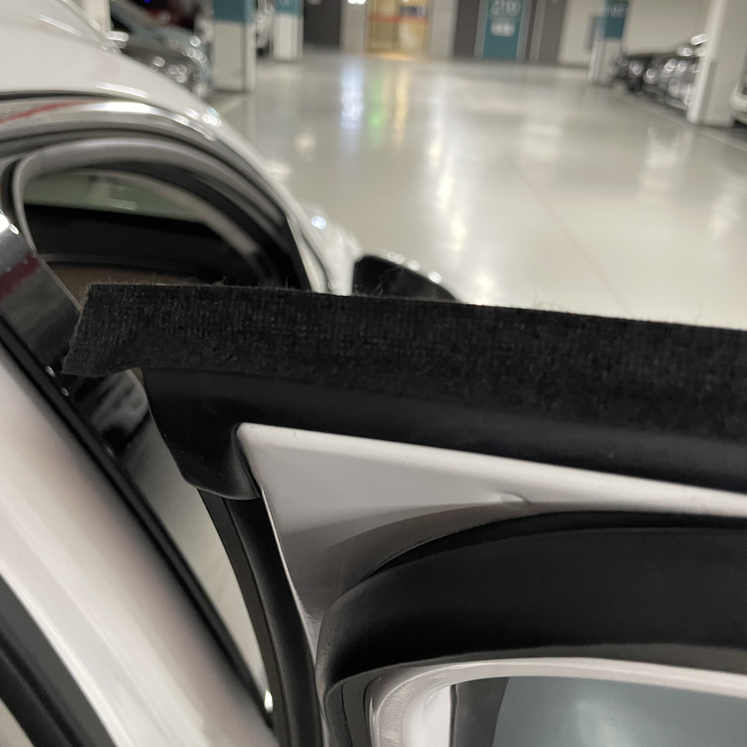 고무몰딩 안쪽으로 틈이 있다면 손톱을 이용해 쭉 슬어서 깔끔하게 마무리해 줍니다.