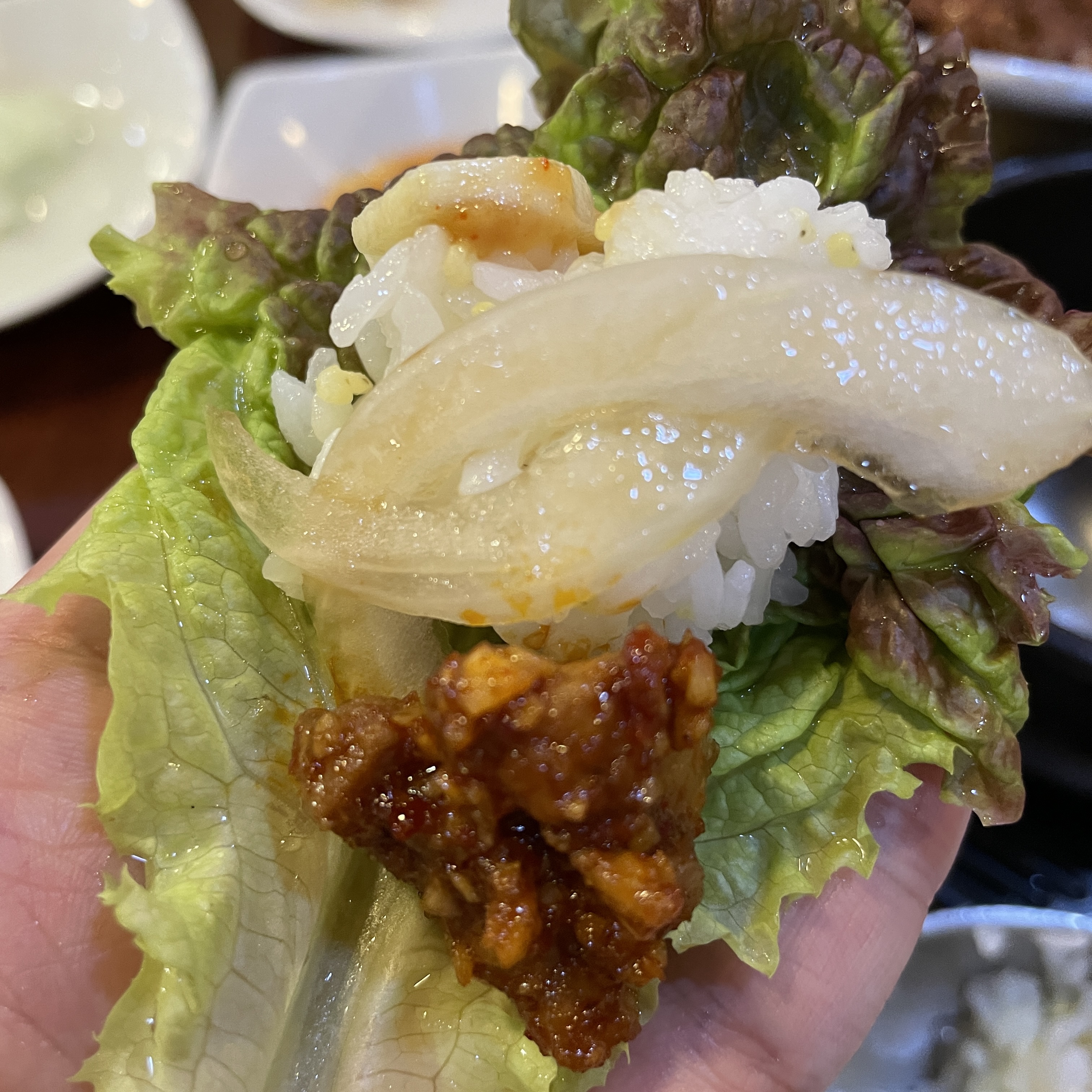 상추와 깻잎과 함께 쌈을 싸 먹으면 환상.