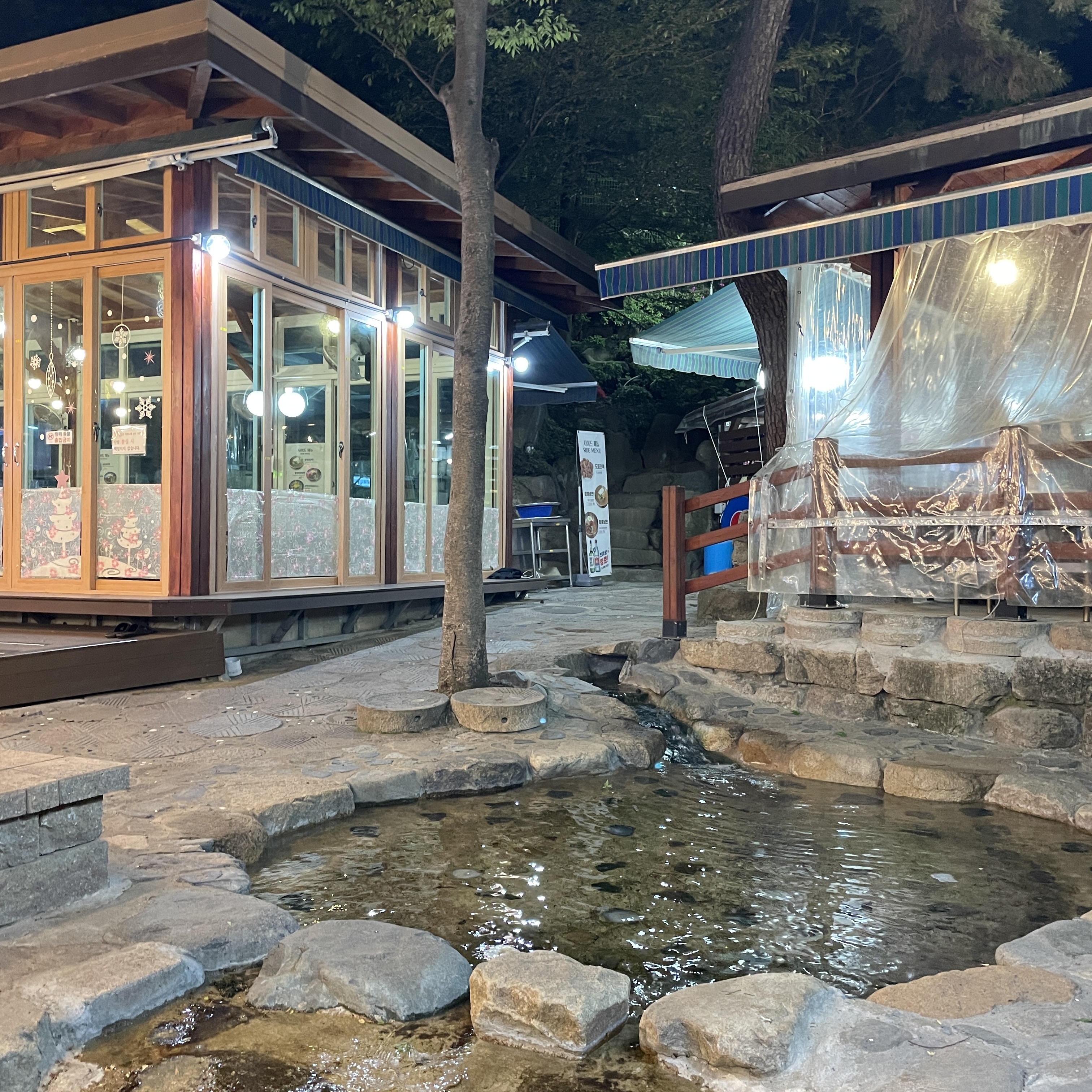 사실 냉수탕 가든이 유명한 이유가 바로 이 야외 테이블 때문이죠.