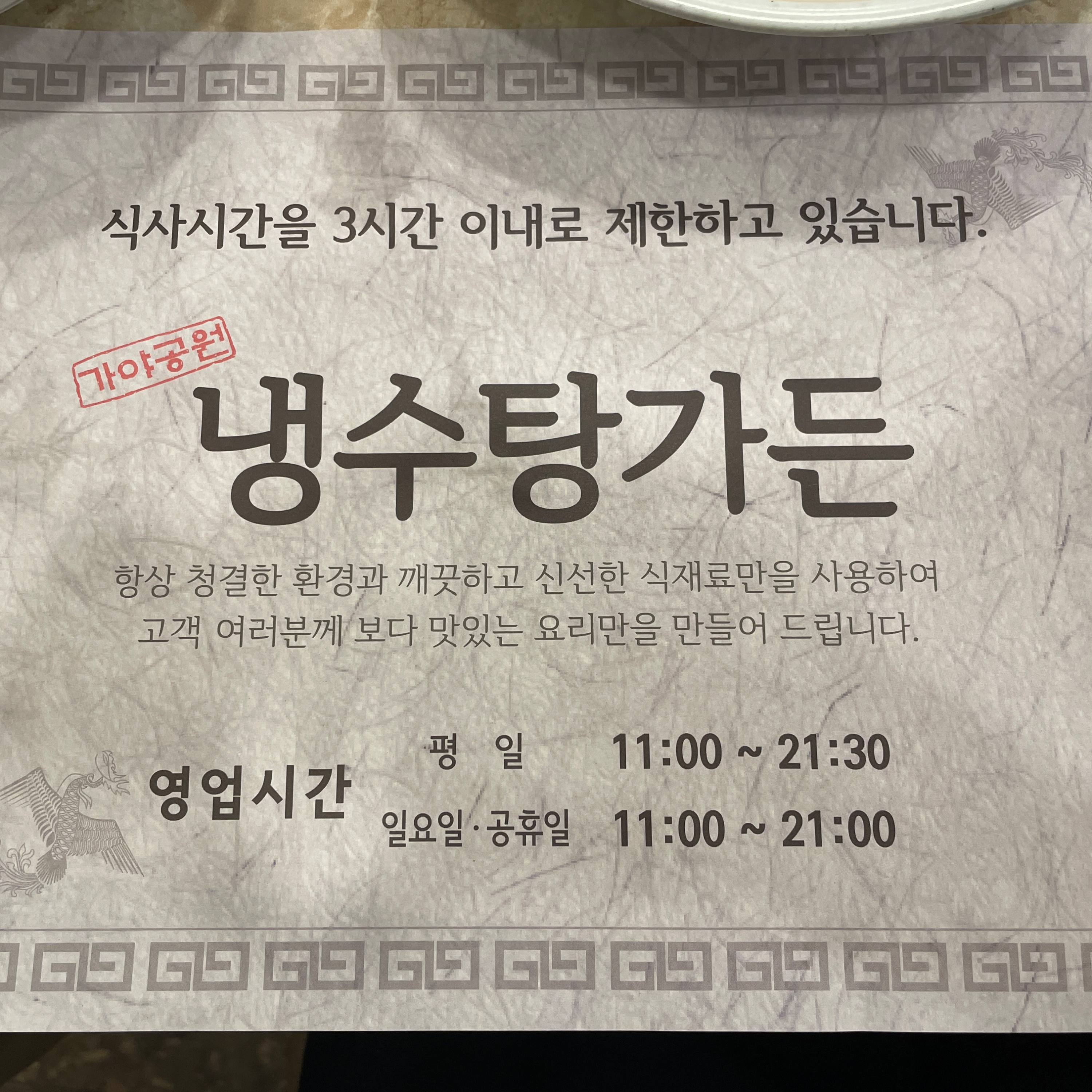 웨이팅이 많은 경우를 대비해서 식사시간은 3시간으로 제한되어 있어요.