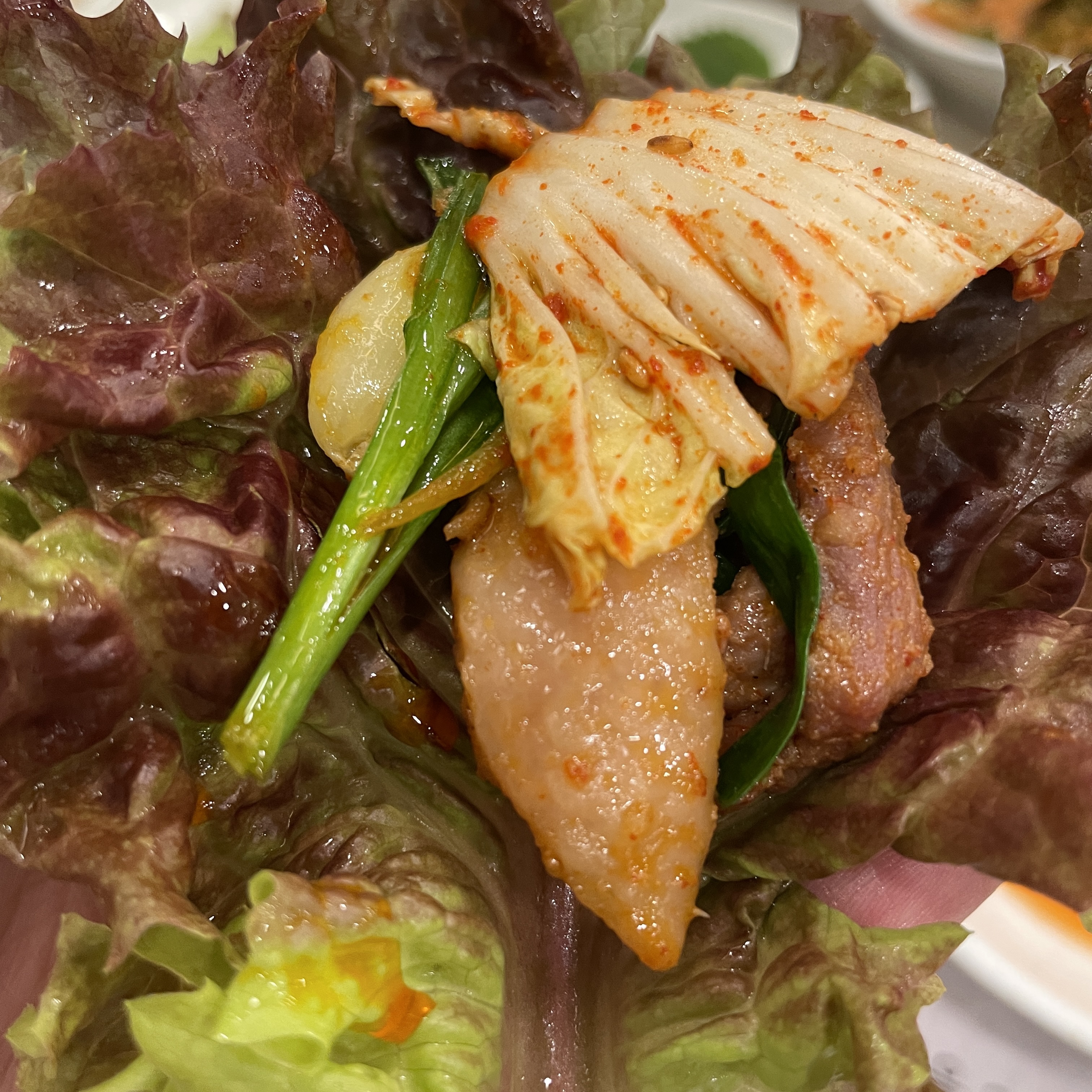 불고기 + 겉절이 + 마늘 + 부추 + 쌈장