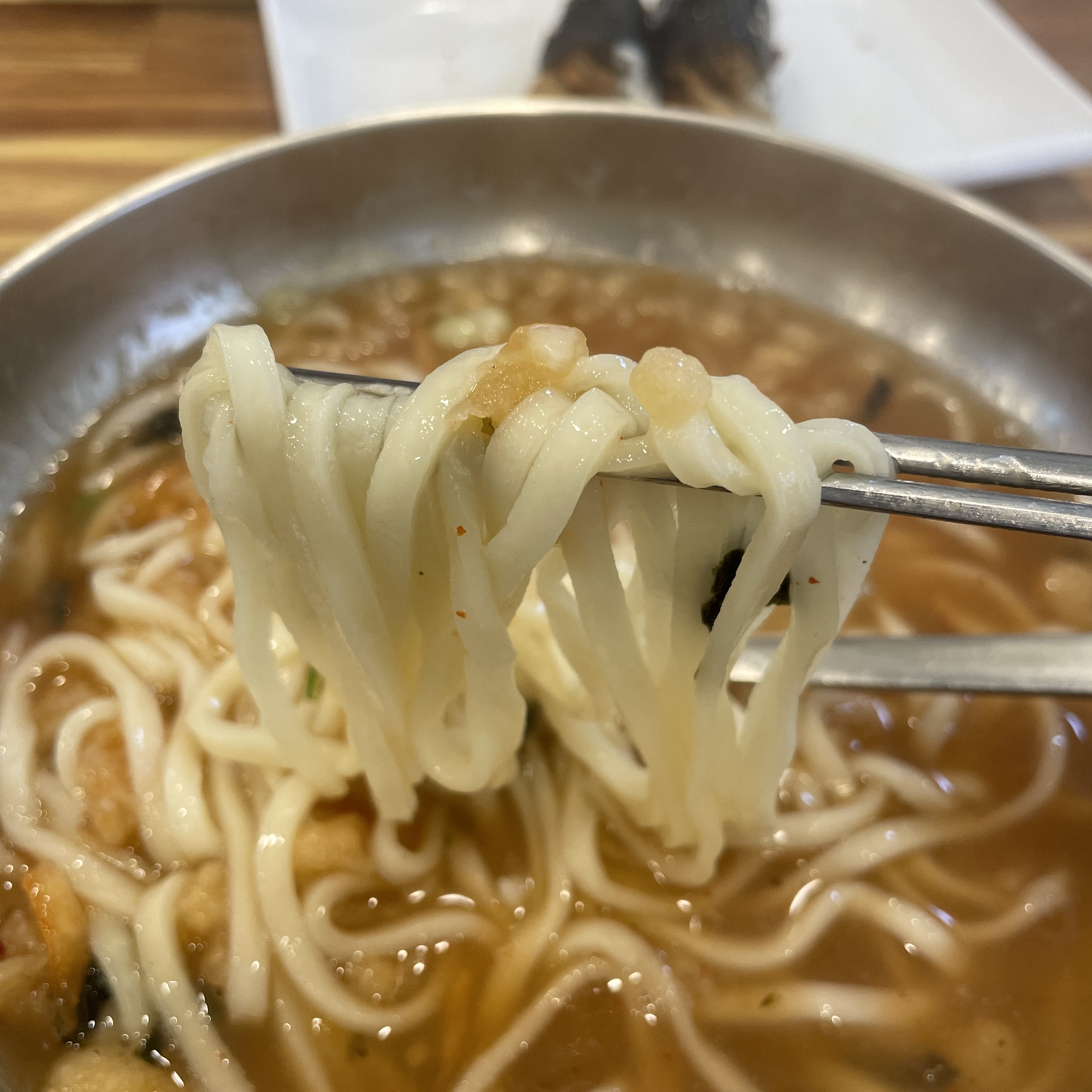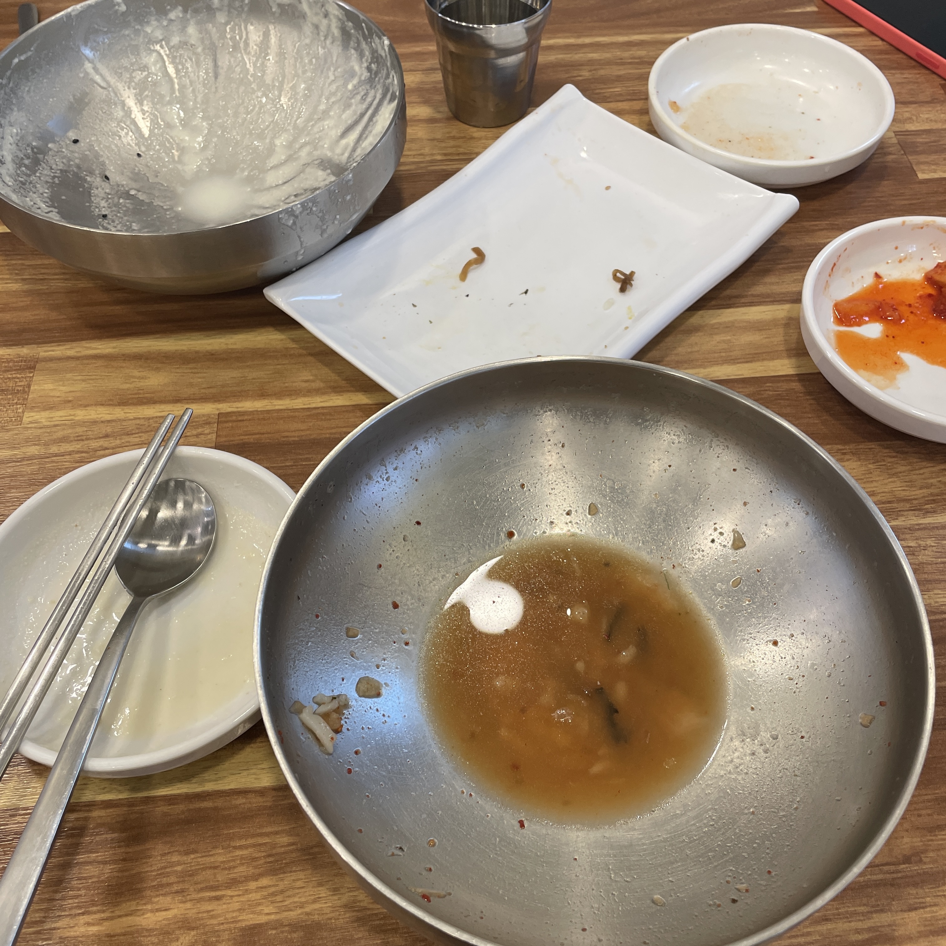 칼국수는 생각보다 칼칼한 느낌이었고, 국물은 걸쭉한 느낌이었어요.