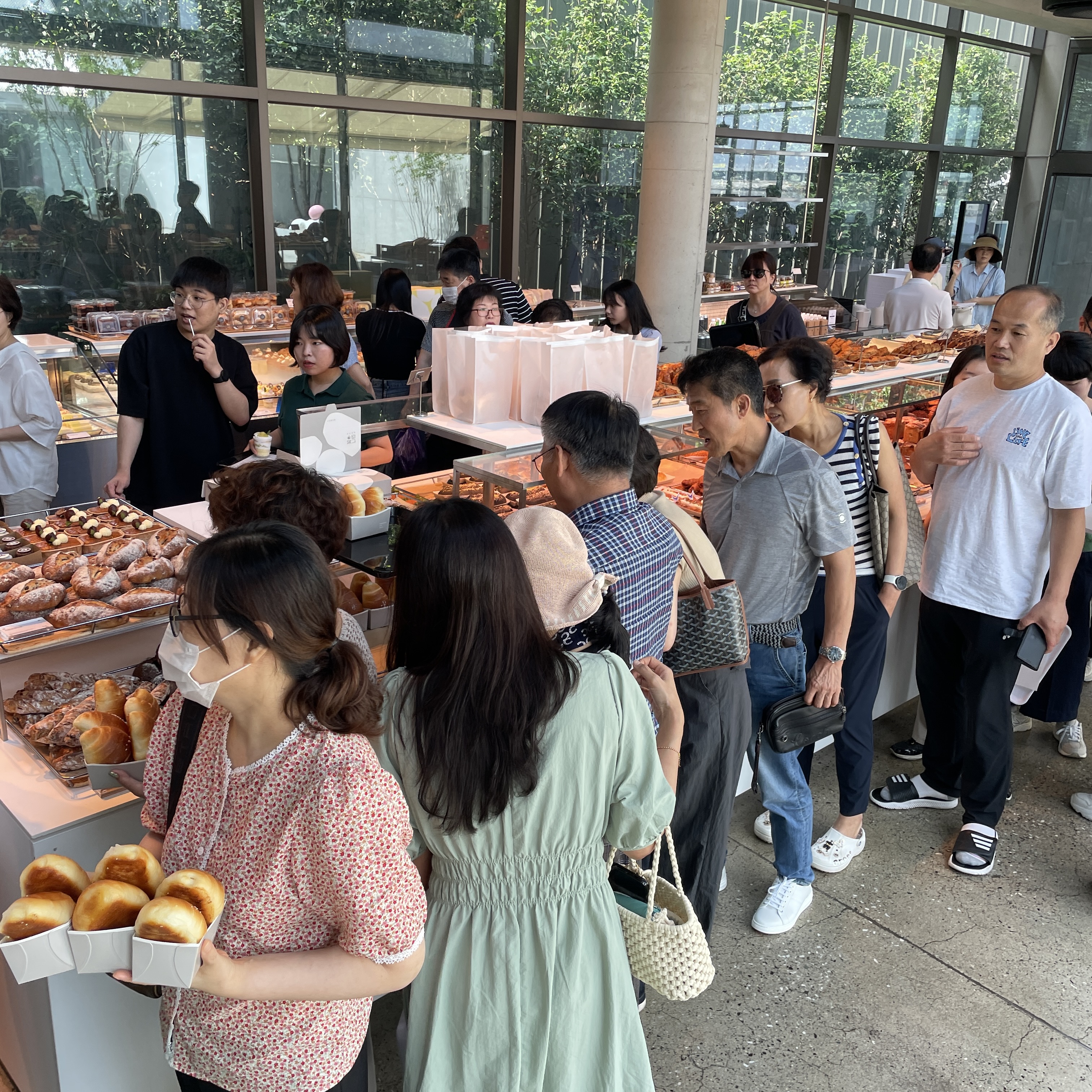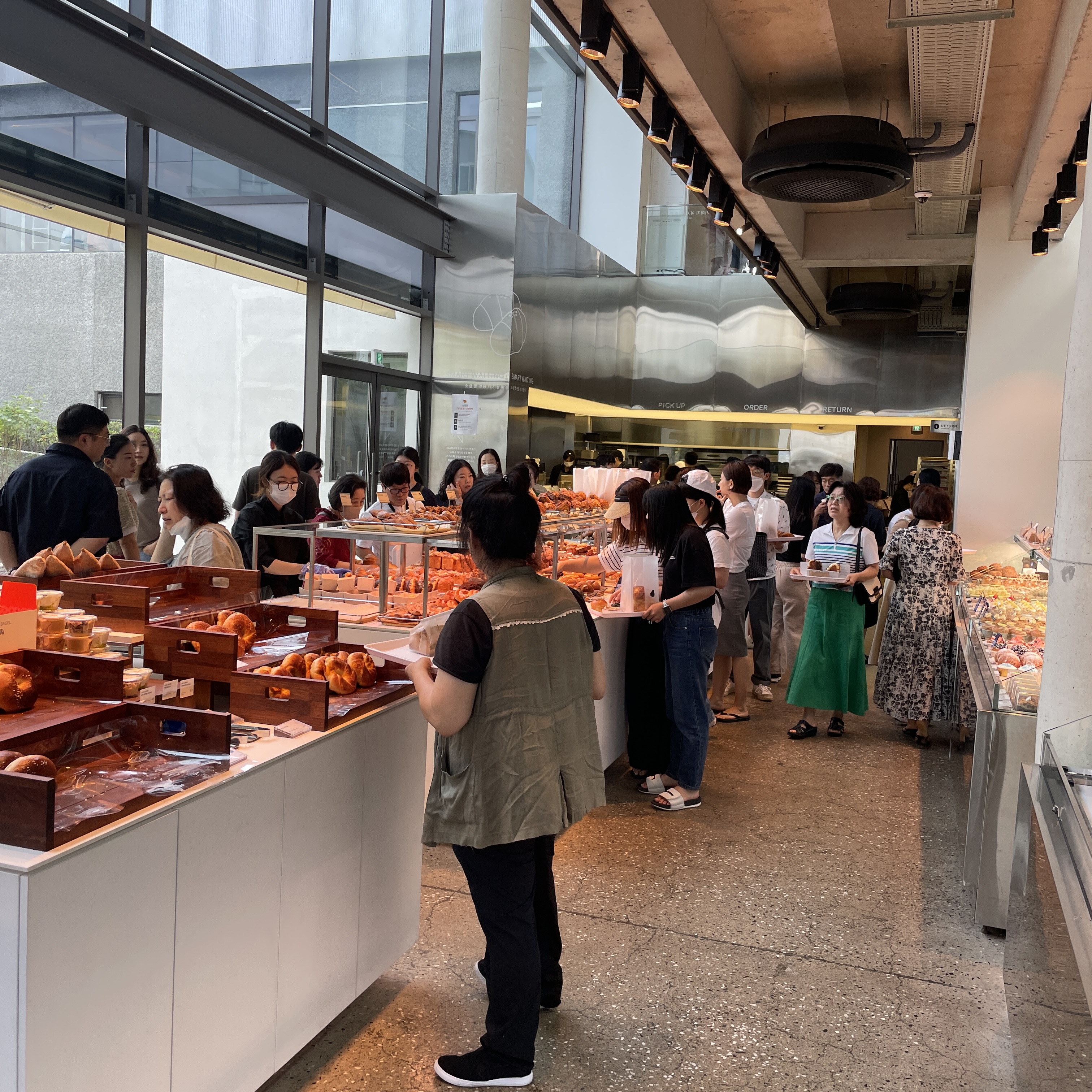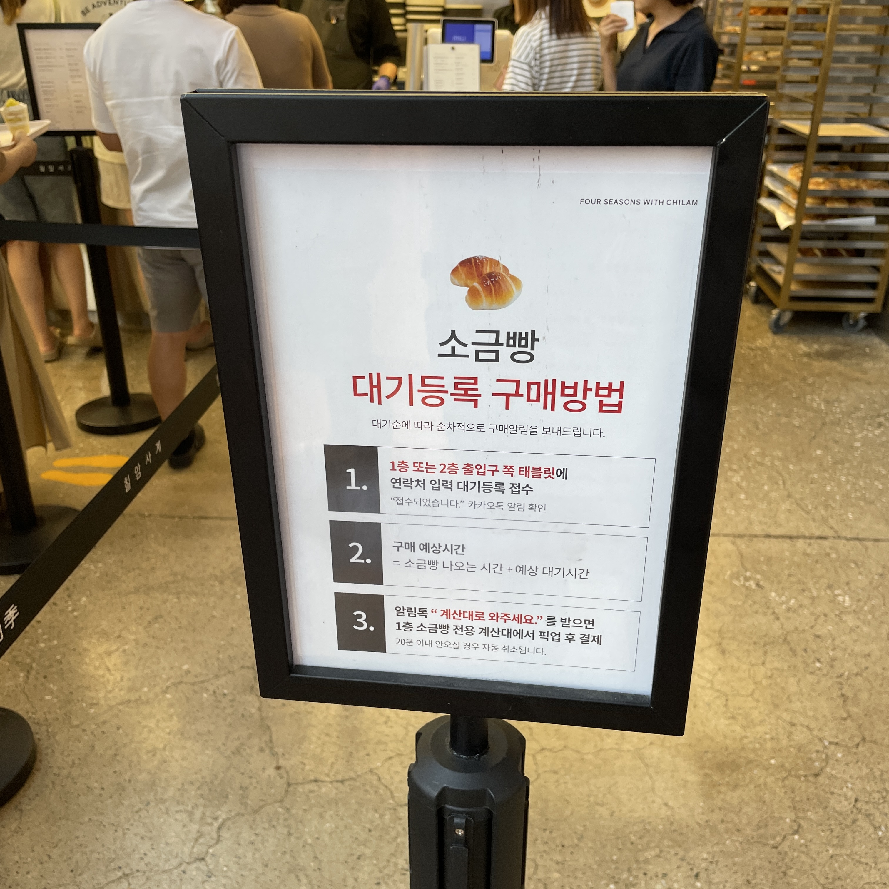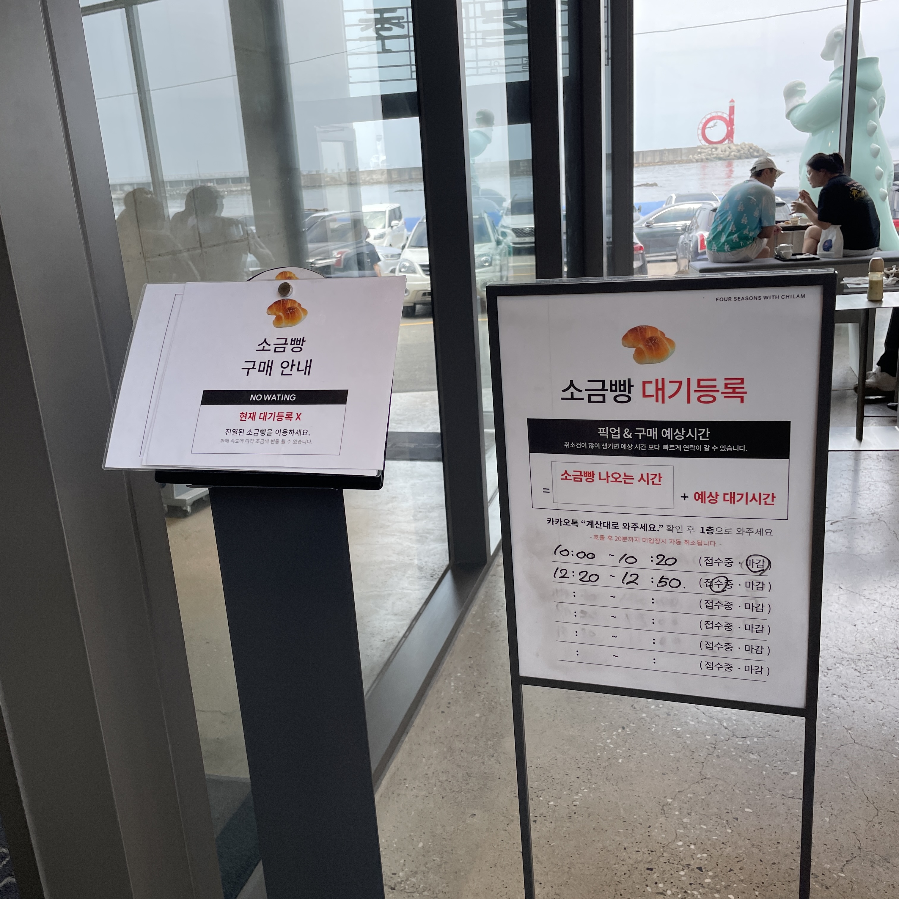 바로 앞에서 대기하니 오른쪽처럼 소금빵 줄이 자연스럽게 형성되었어요.