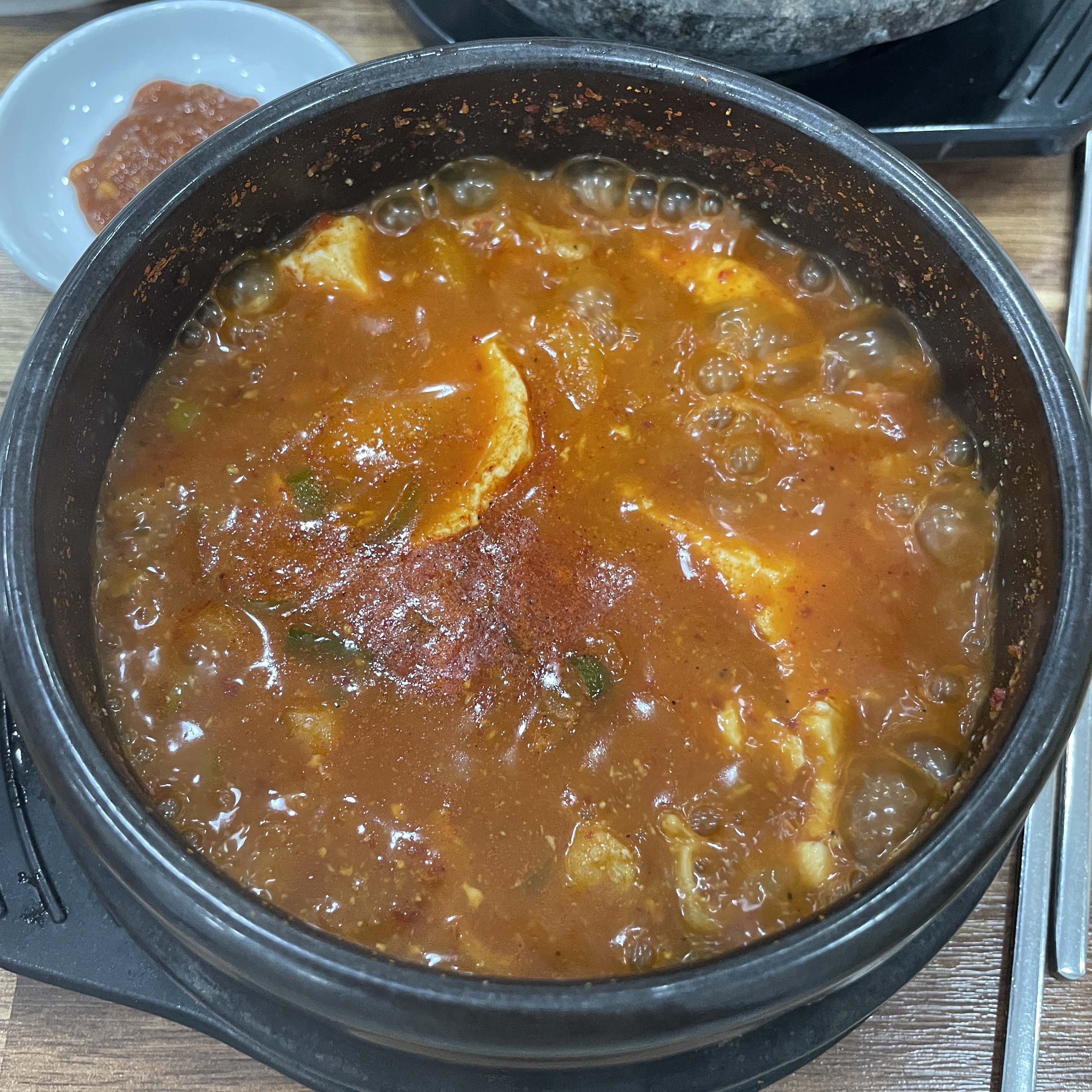 저는 곱창 순두부를 주문했어요.