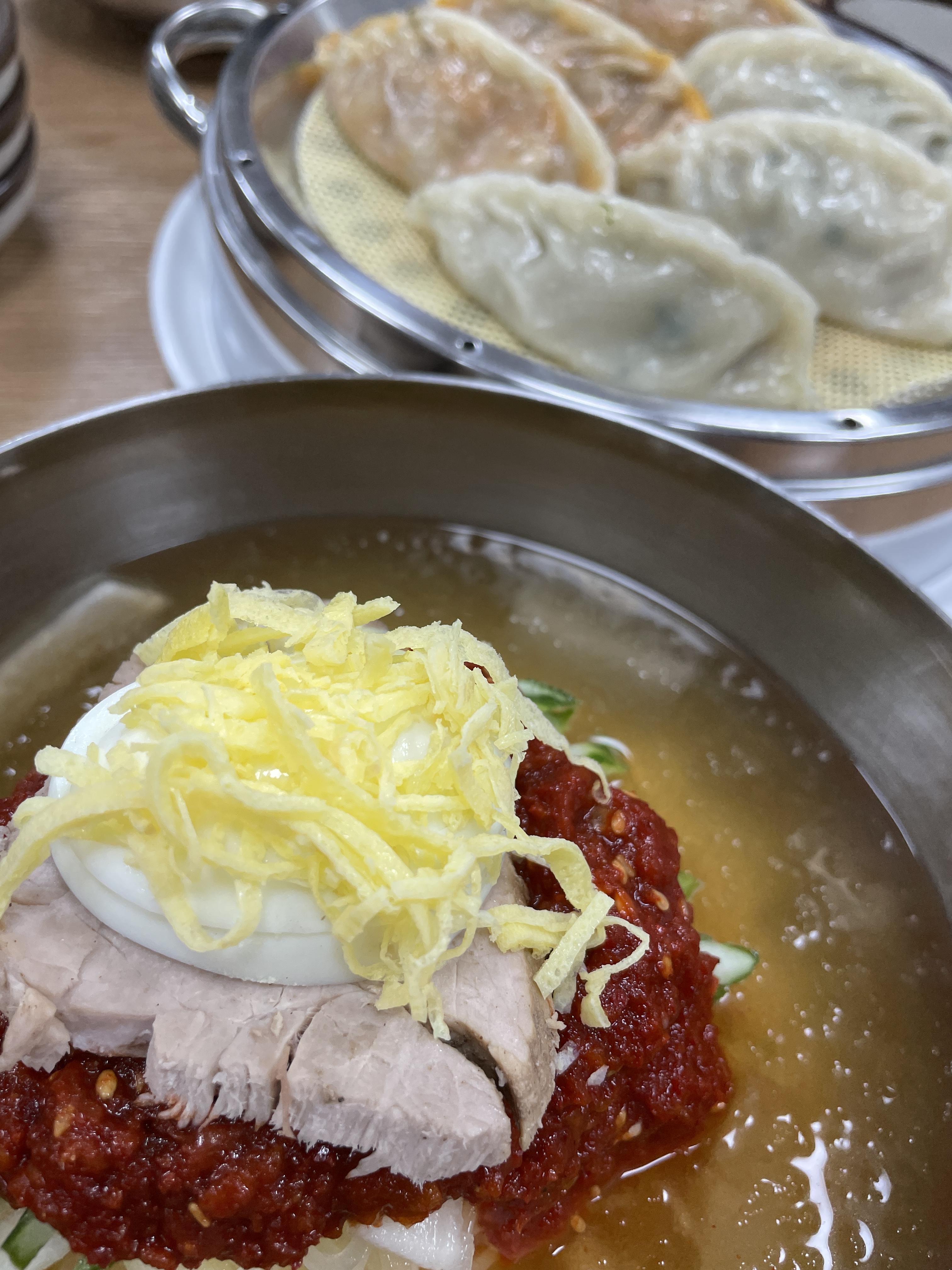 먹음직스러운 밀면과 만두가 나왔네요.