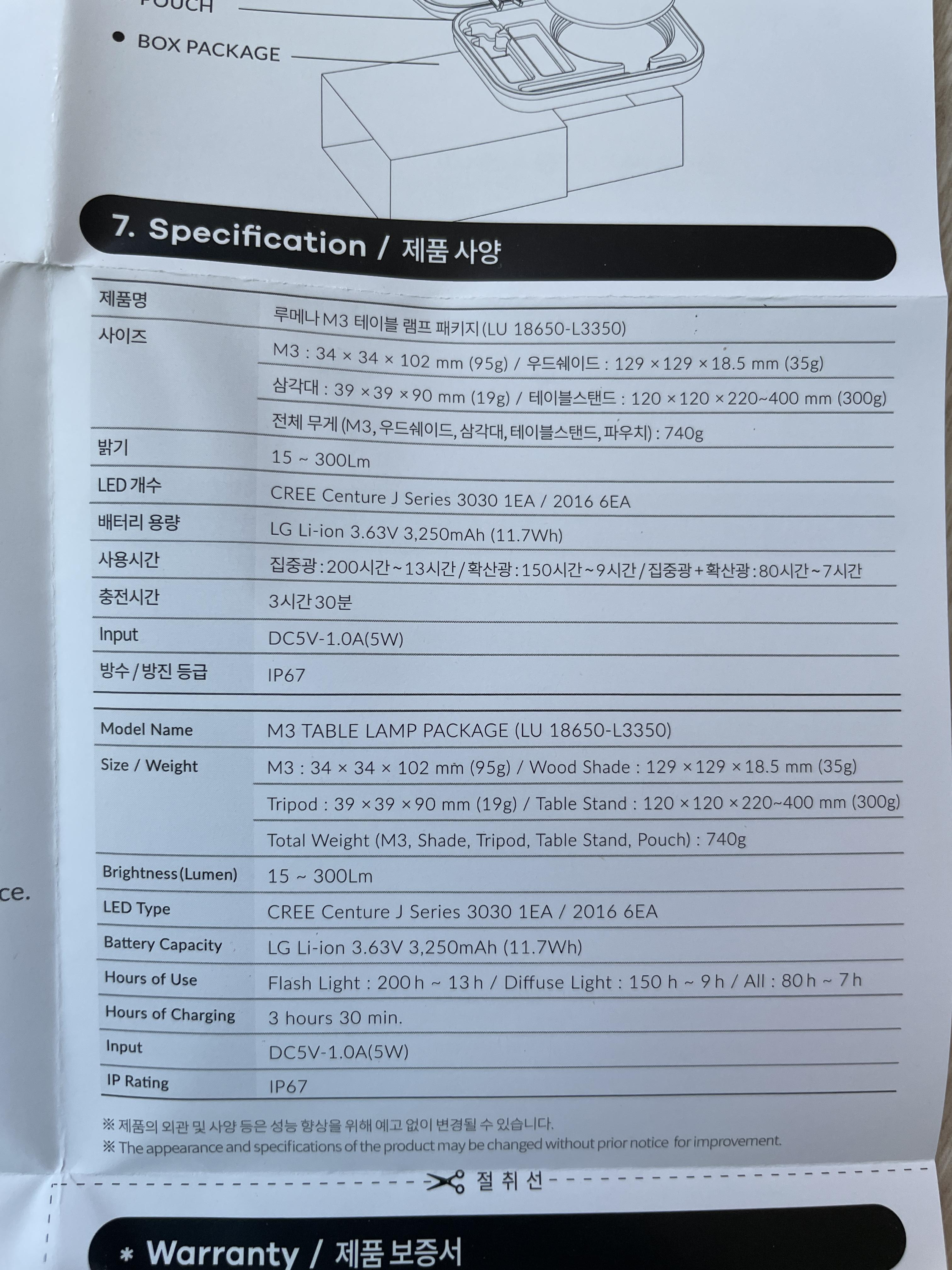 1. 무게 : 95g(램프) 740g(전체)