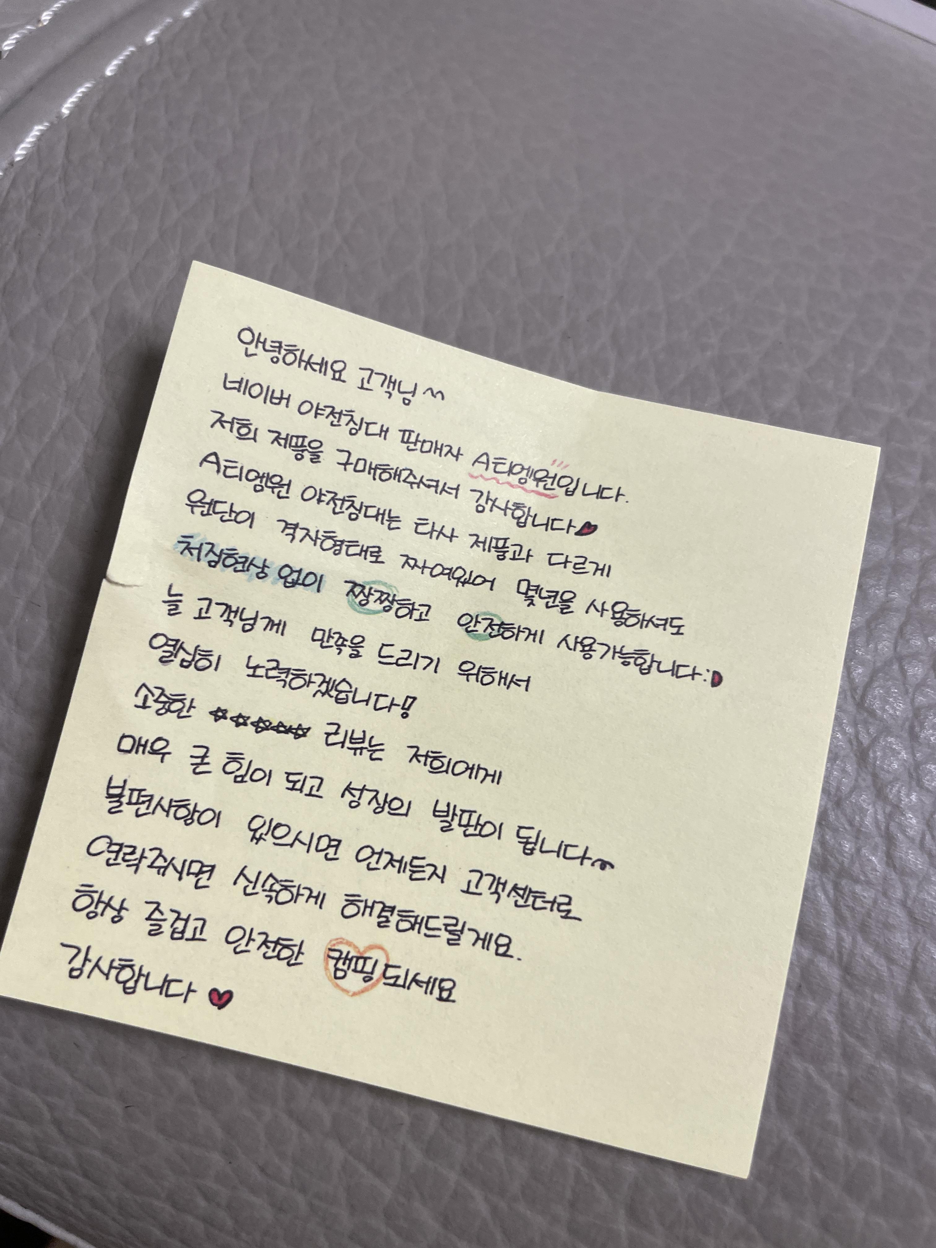A티엠원이라는 판매자가 판매하는 제품인데 기분좋아지는 쪽지가 있네요!