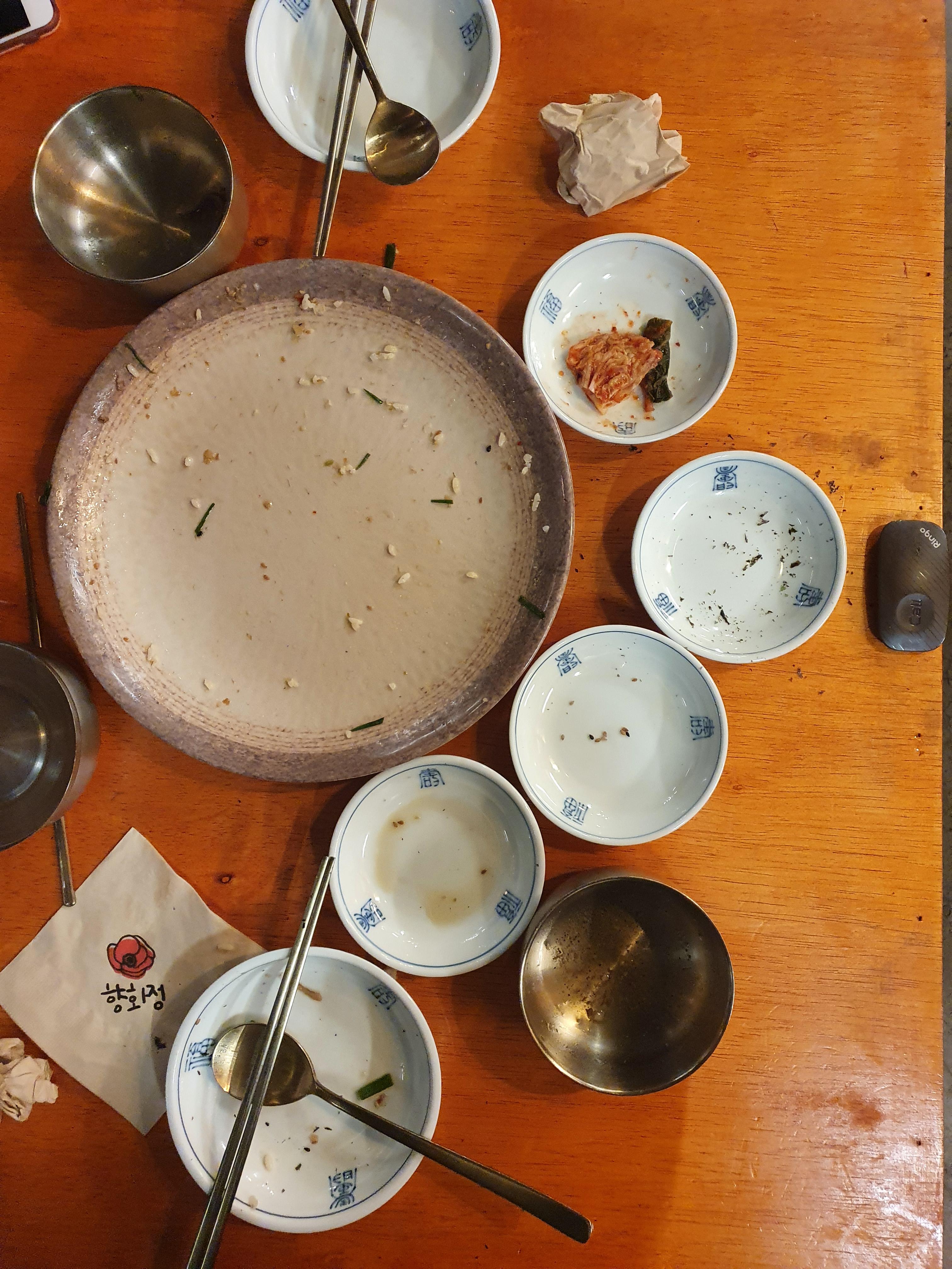너무 깨끗하게 먹었나요?? 정말 맛있어서 그랬습니다 ㅋㅋㅋㅋ 김치 두 조각이 조금 아쉽네요.... 네... 정말 맛있었어요 ㅋㅋ 더 할 말이 없습니다. 뭇국도 두 그릇 먹었습니다. 가격이 30,000원 정도 나왔는데 돈 아깝다는 생각은 들지 않았습니다.