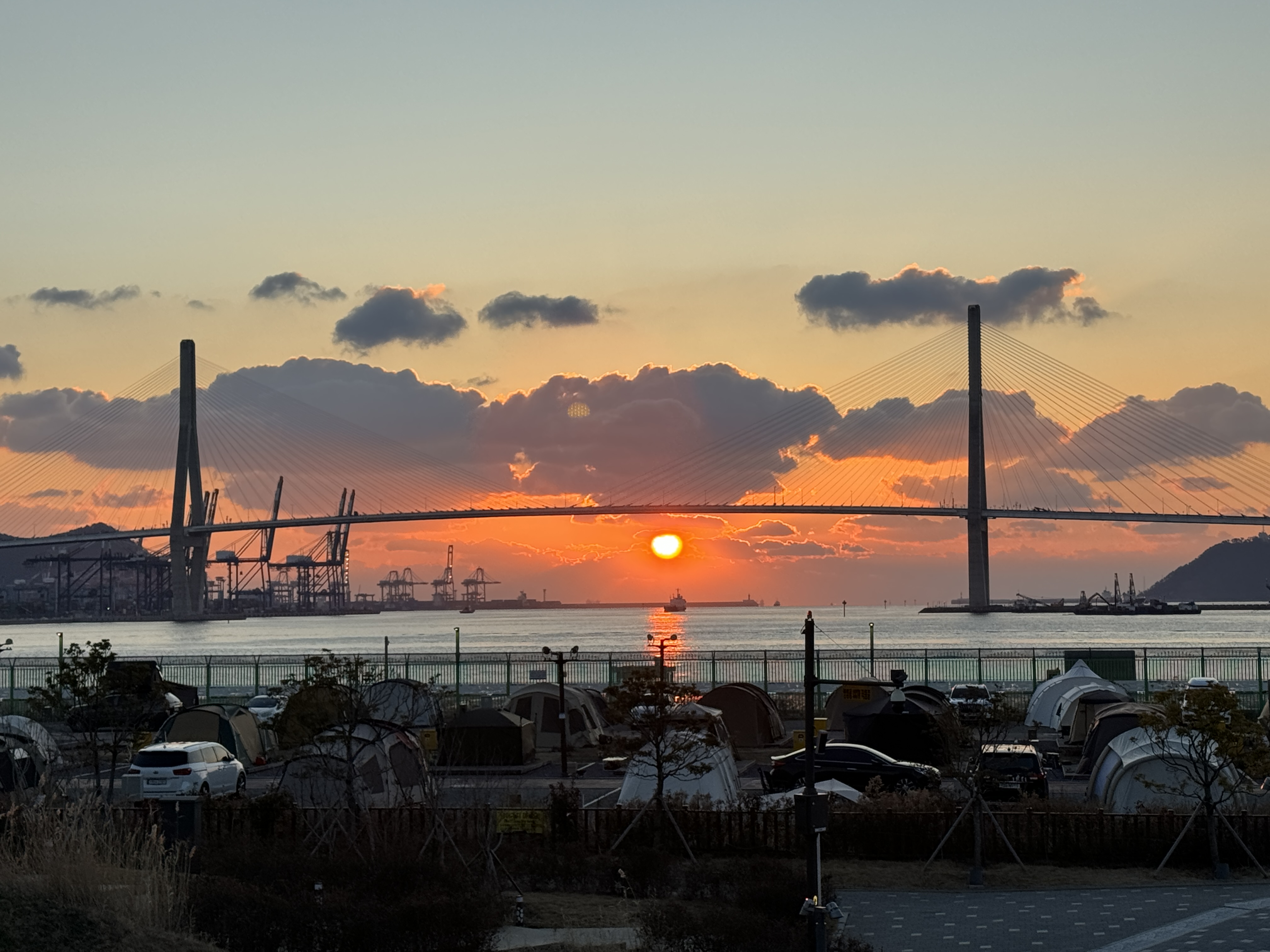 부산항을 배경으로 해가 뜨는 장면은 정말 좋았습니다.