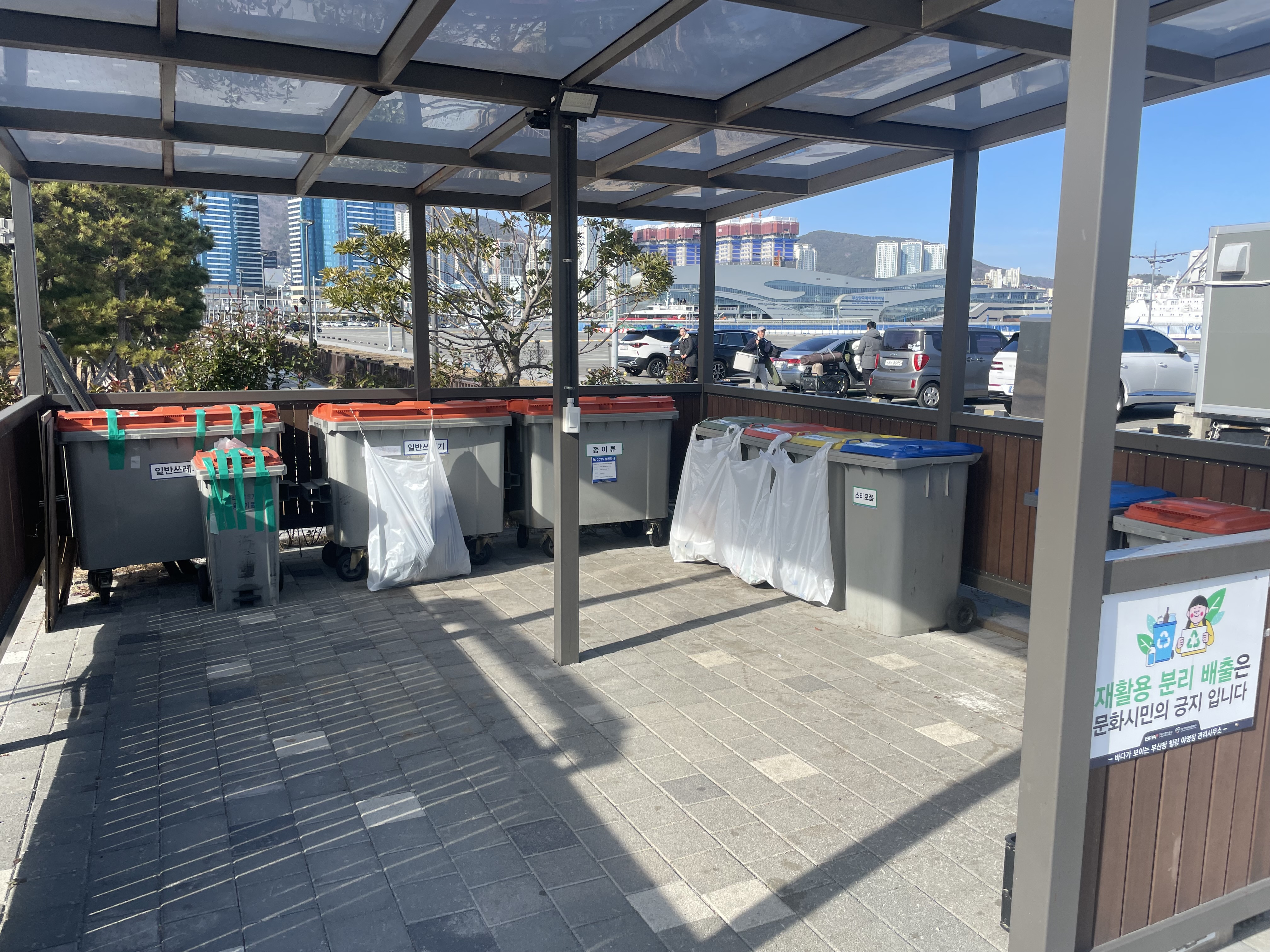 앞서 말씀드린 것과 같이 각자 쓰레기를 모아서 분리수거 시설에서 한 번에 분리수거 진행해 주시면 됩니다.
