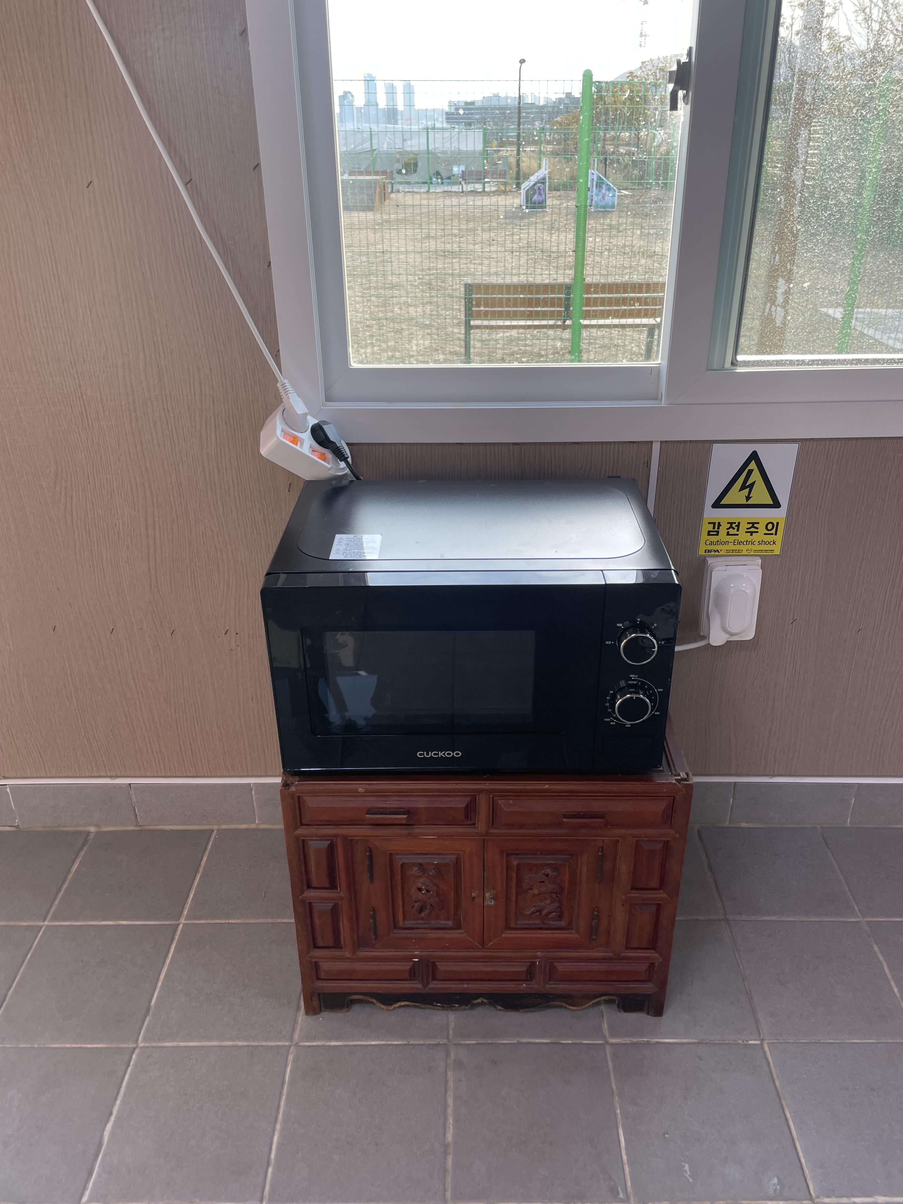 전자레인지도 하나가 준비되어 있어서 데워먹는 데는 크게 문제가 되지 않아요.