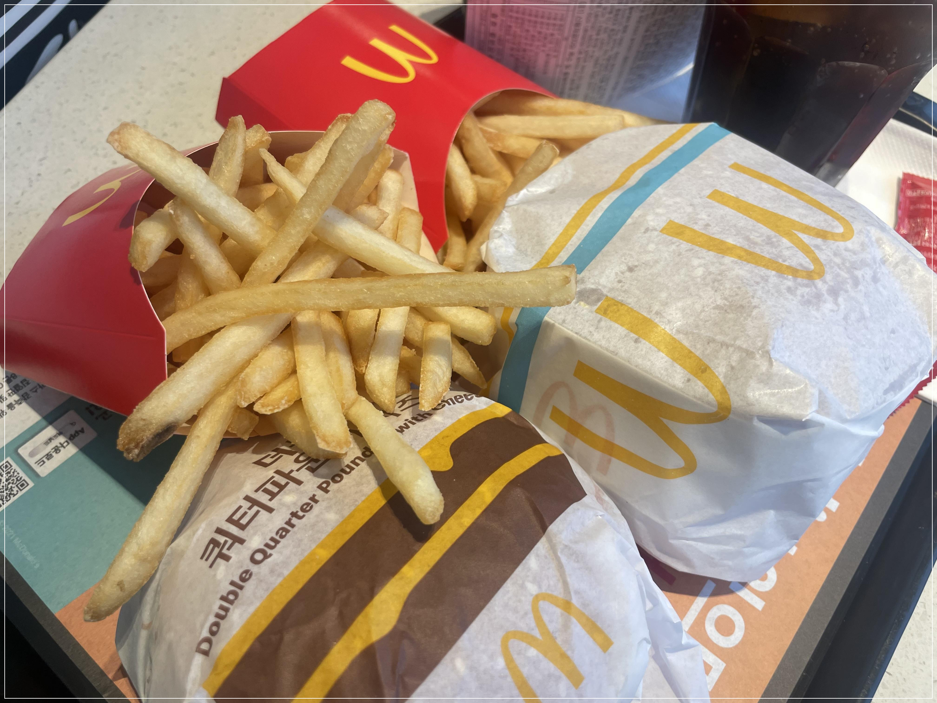더블 쿼터파운드의 경우 고기가 엄청 많고 신선한 양파의 향이 마치 수제버거를 먹는 느낌이었어요.