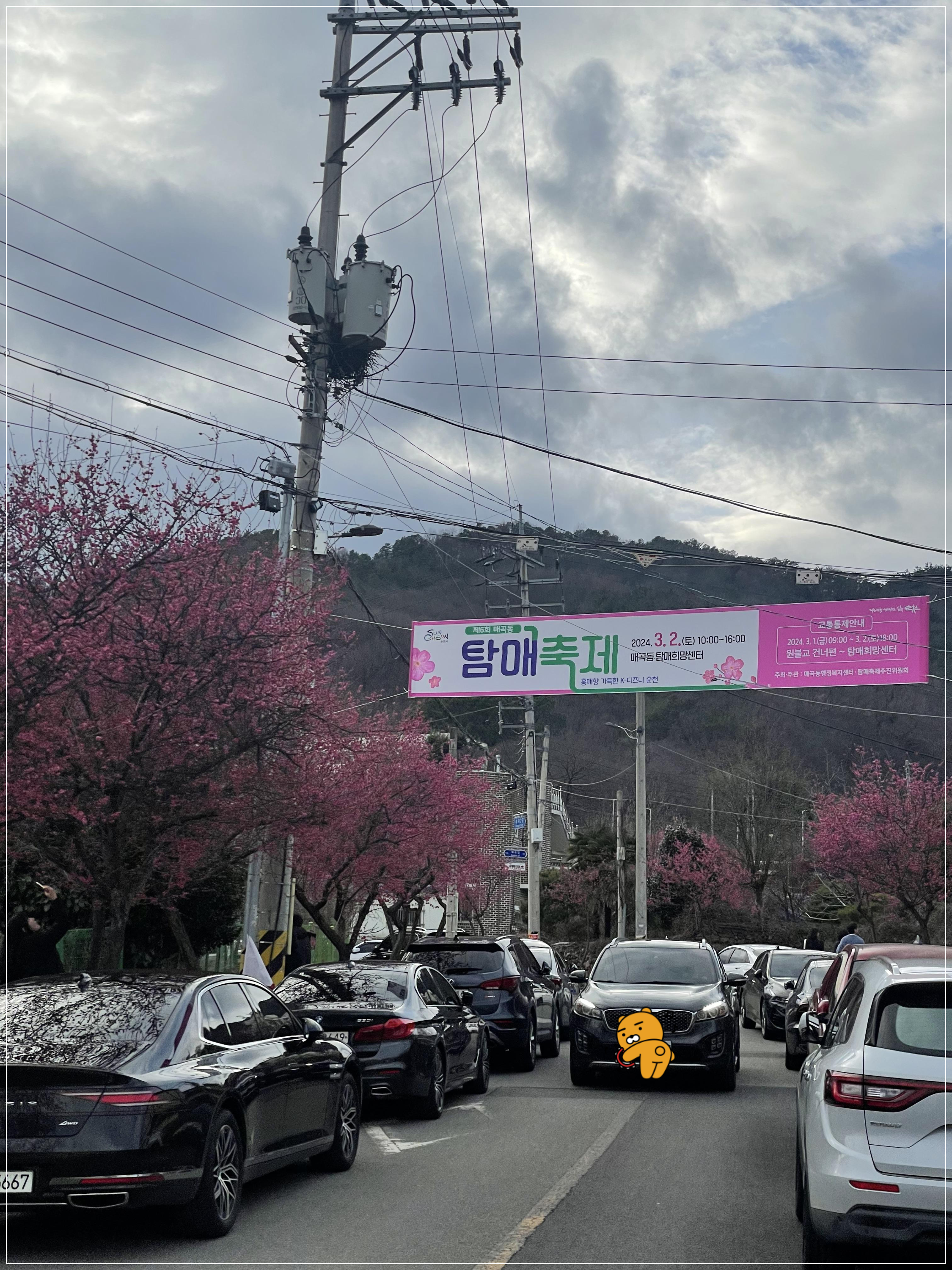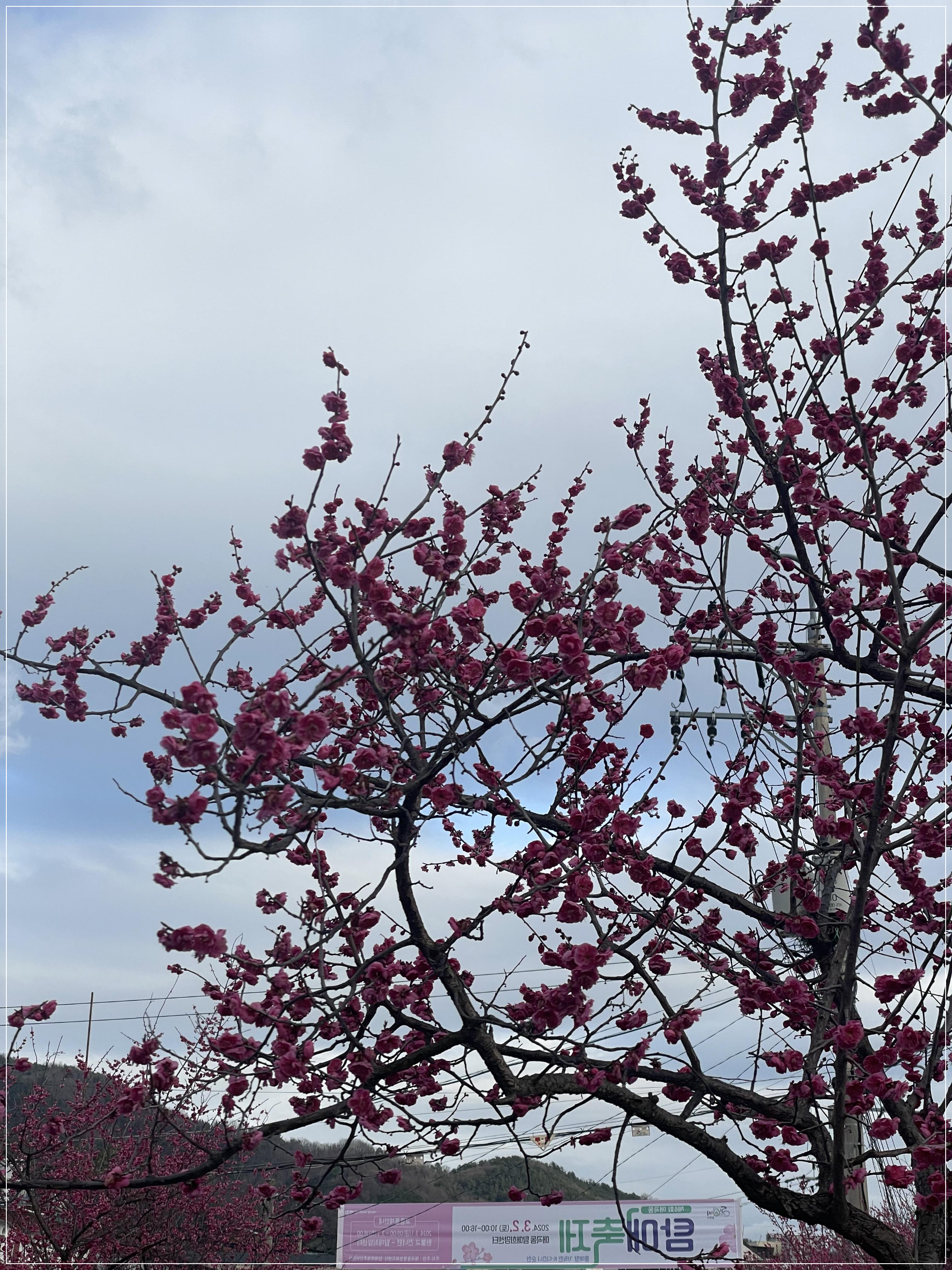 탐매축제 메인도로는 전체가 홍매화로 덮여 있어요.