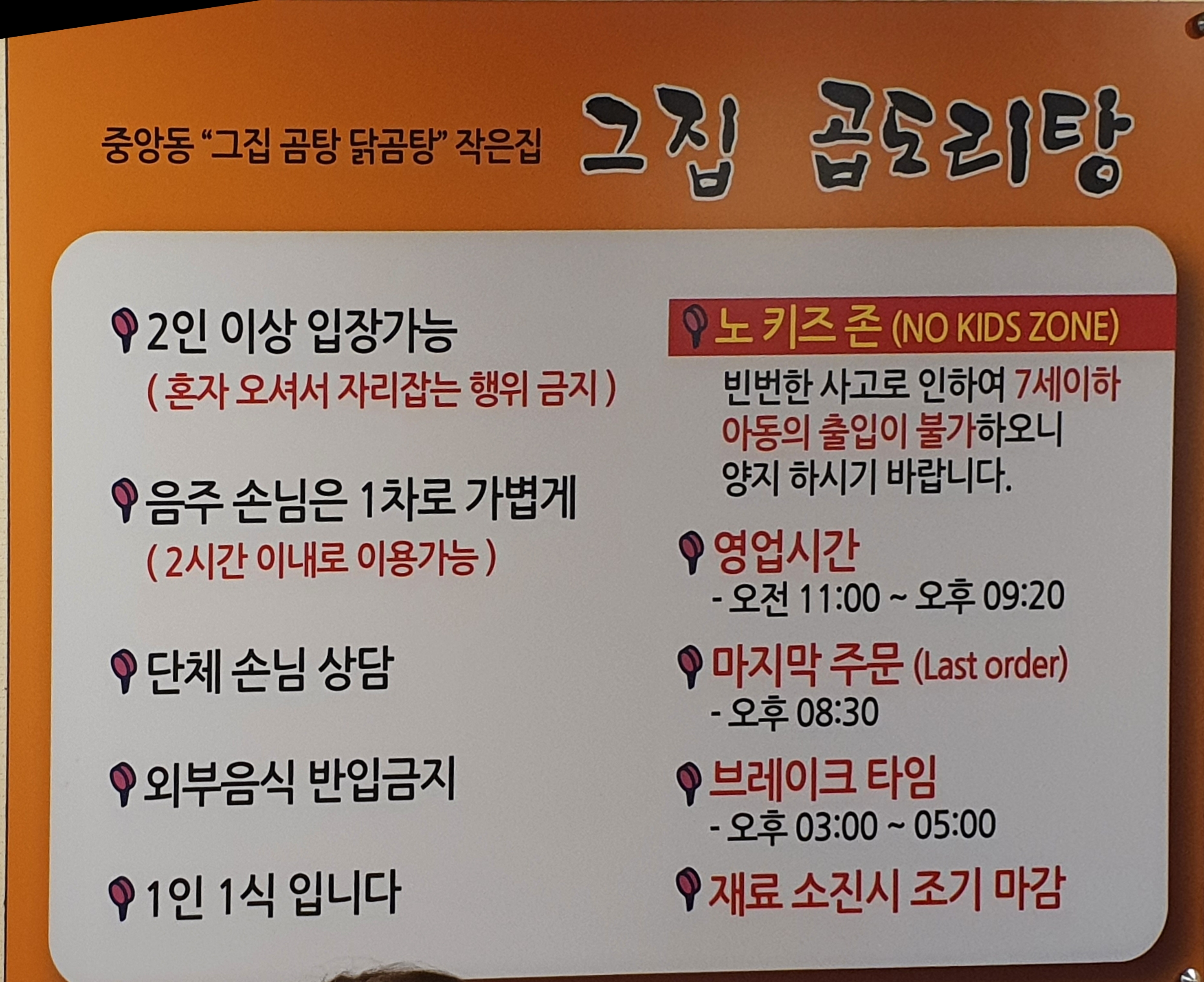 밤늦게까지 하는 술집도 아니고 밥집인데 되게 칼같이 노 키즈존입니다.