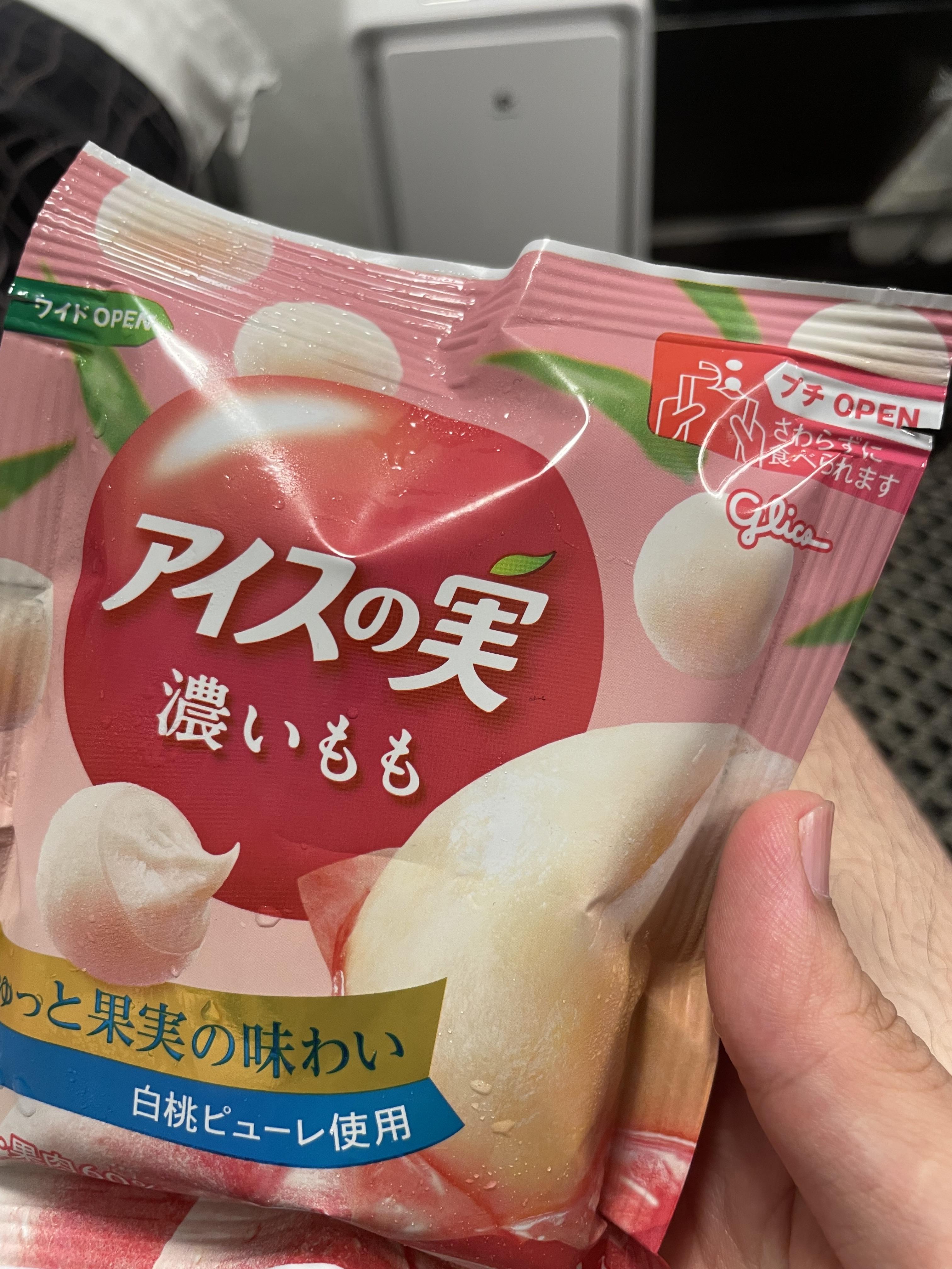 대왕 구슬 아이스크림인데 딱딱한 얼음 안에 복숭아 아이스크림이 있어서 조화가 정말 좋습니다.