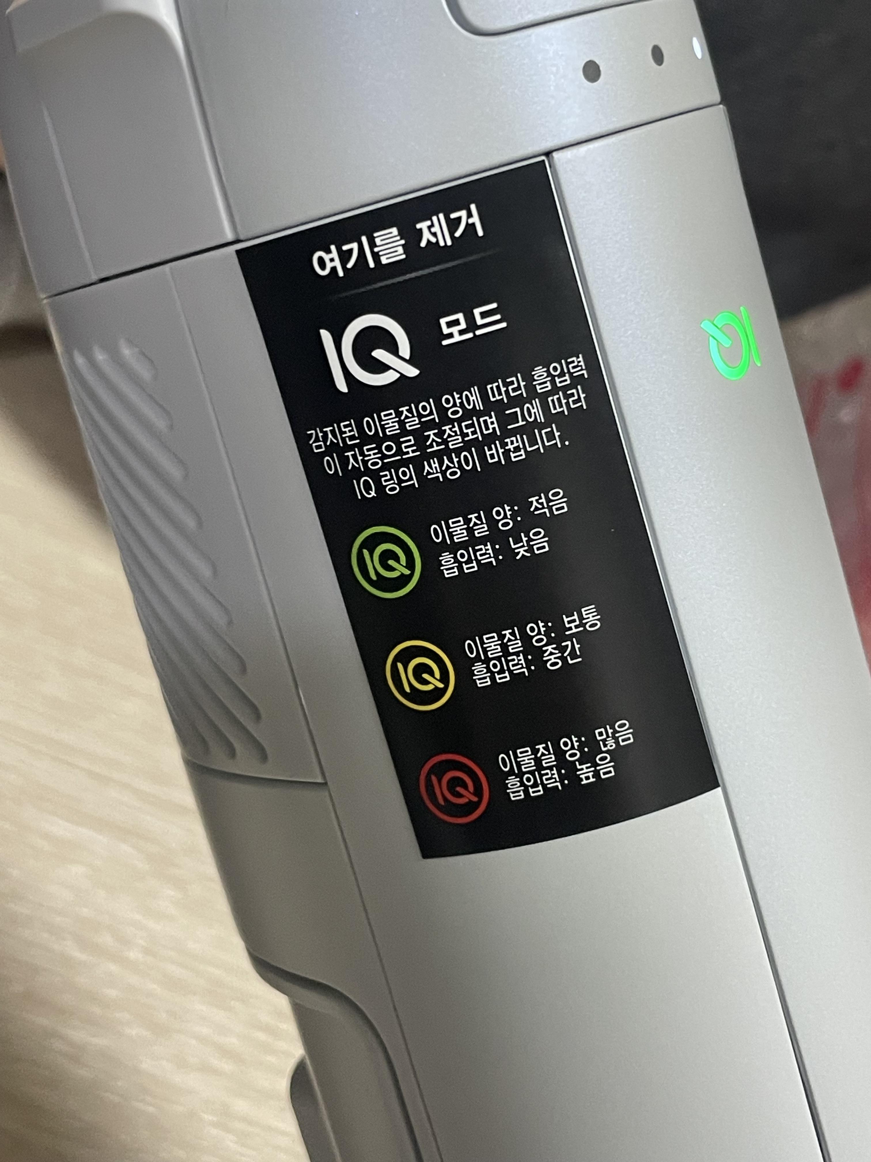 추가적으로 IQ시스템이 탑재되어 있어 수동으로 흡입력을 조절할 필요가 없어요.
