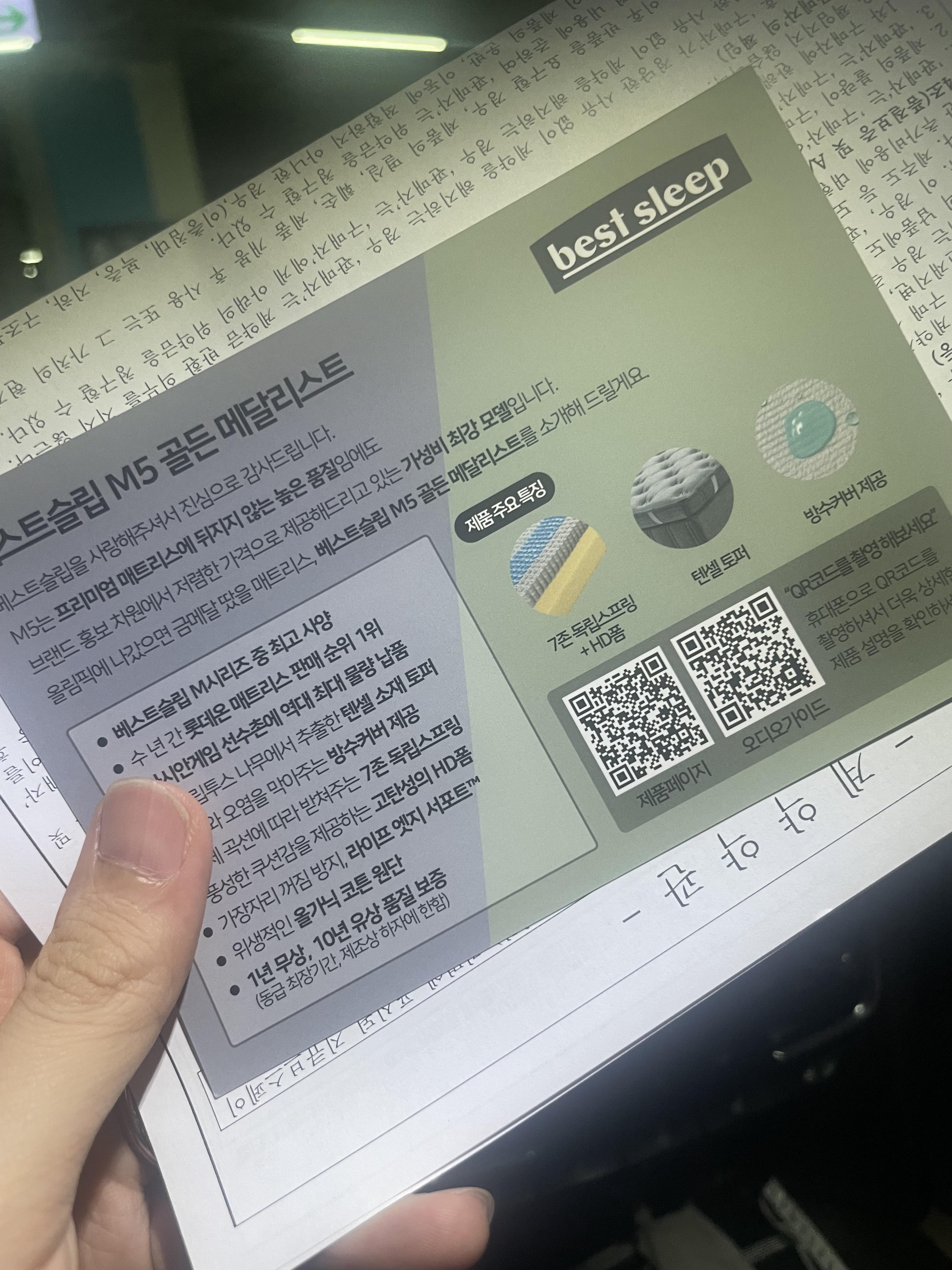 여러 매트리스를 추천해 주셨는데, 그중 가장 가성비도 좋고 홍보도 많이 된 베스트슬립의 m5모델이 마음에 들었어요.