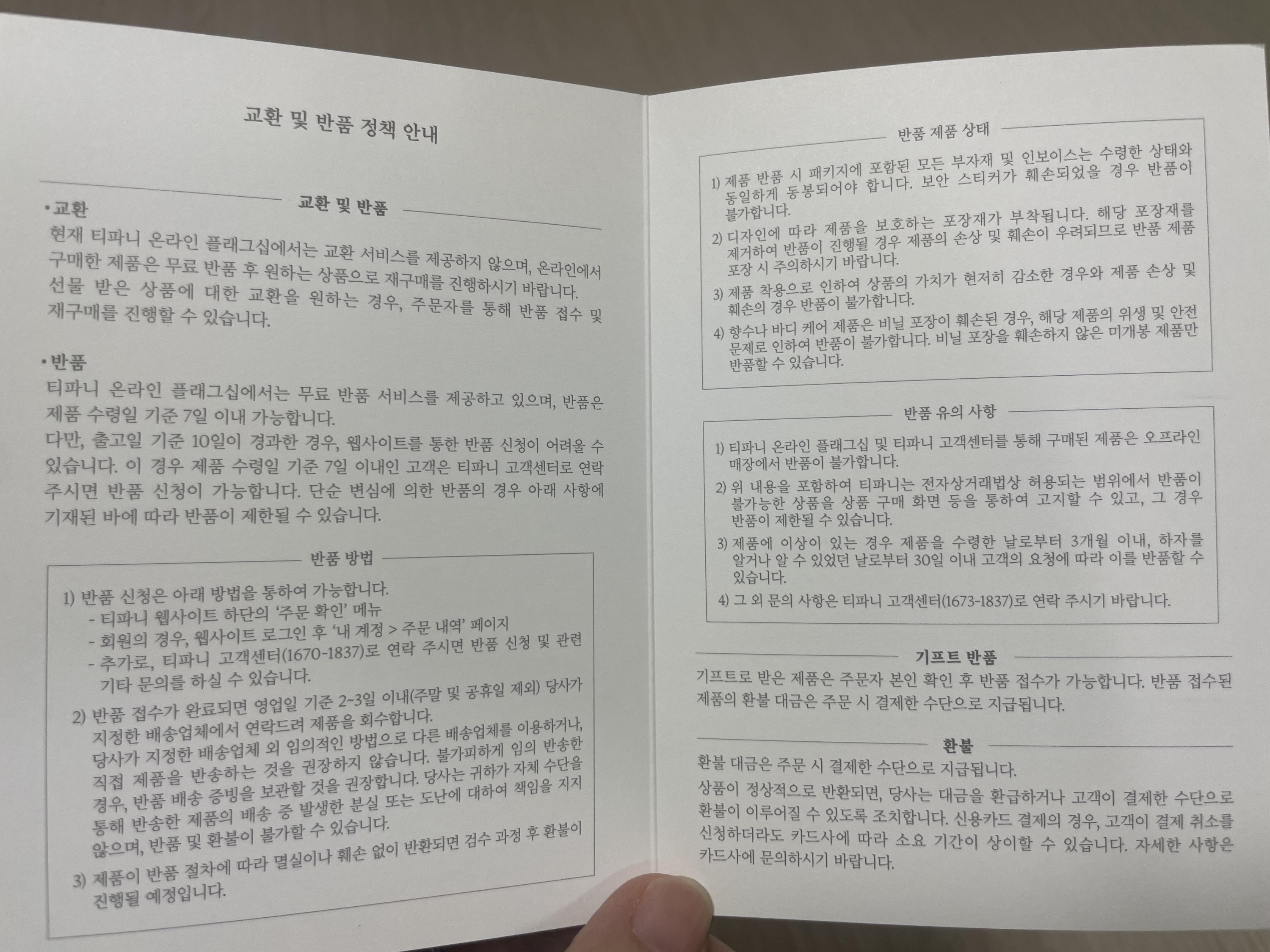 교환 반품 기준은 사진과 같습니다.