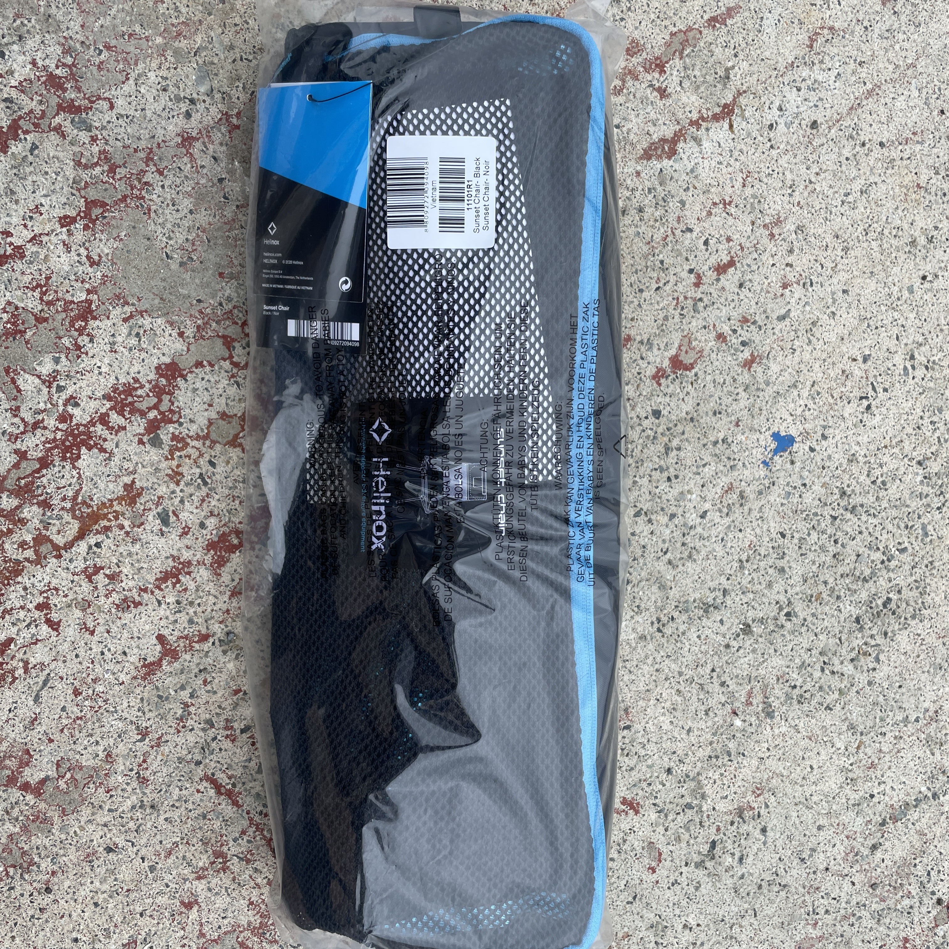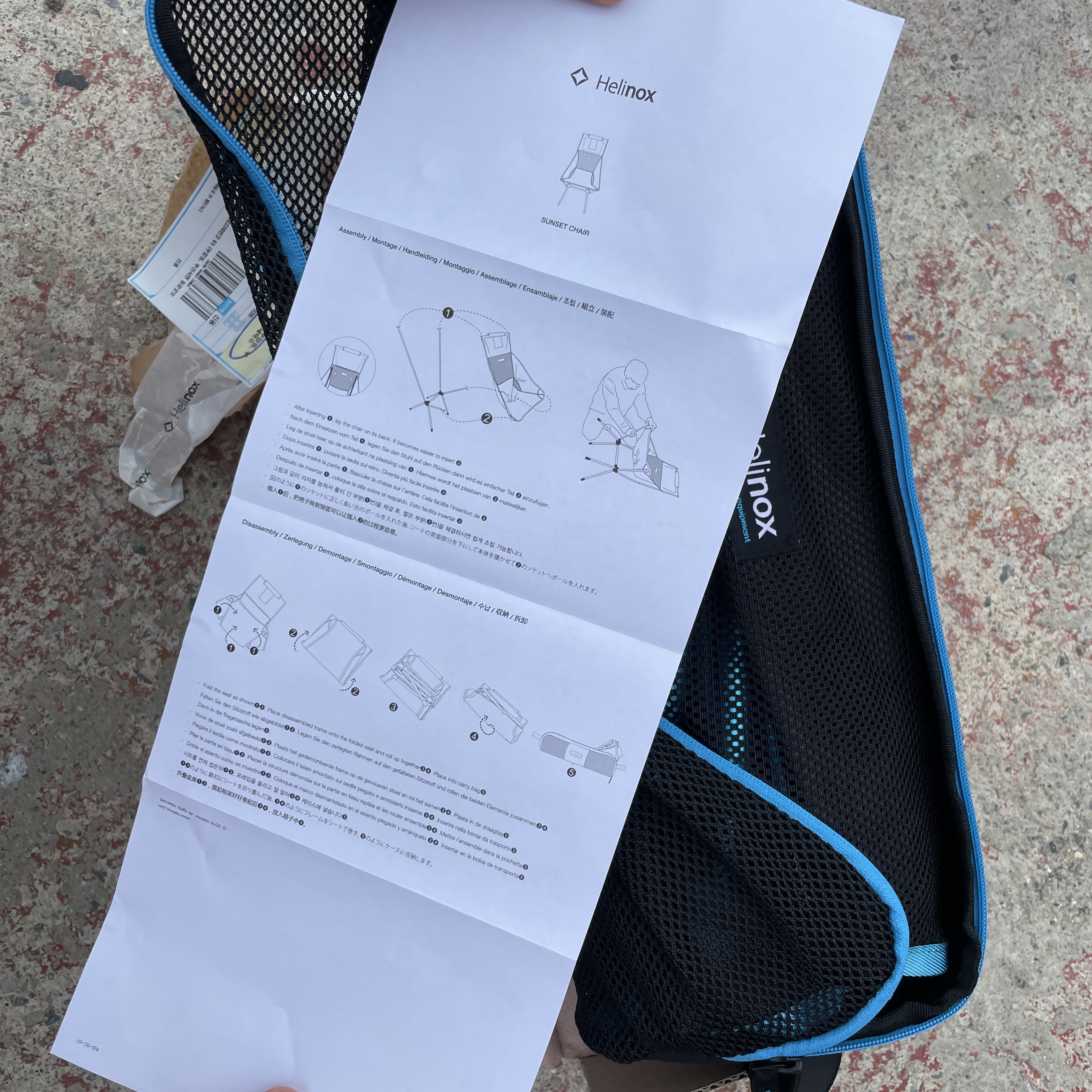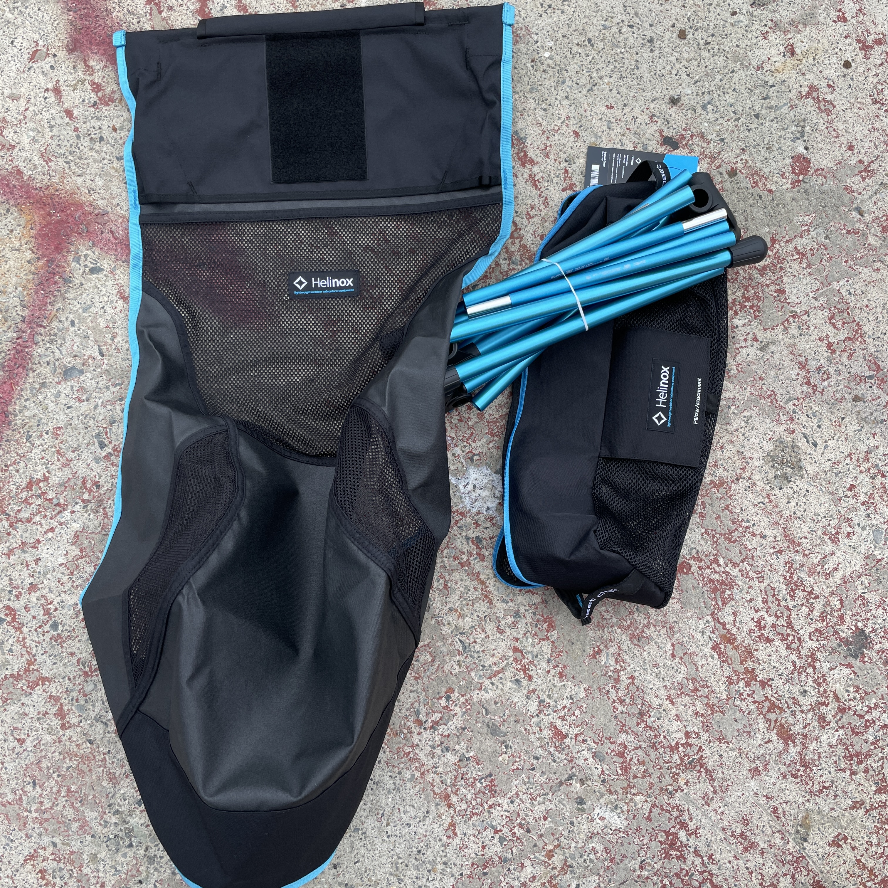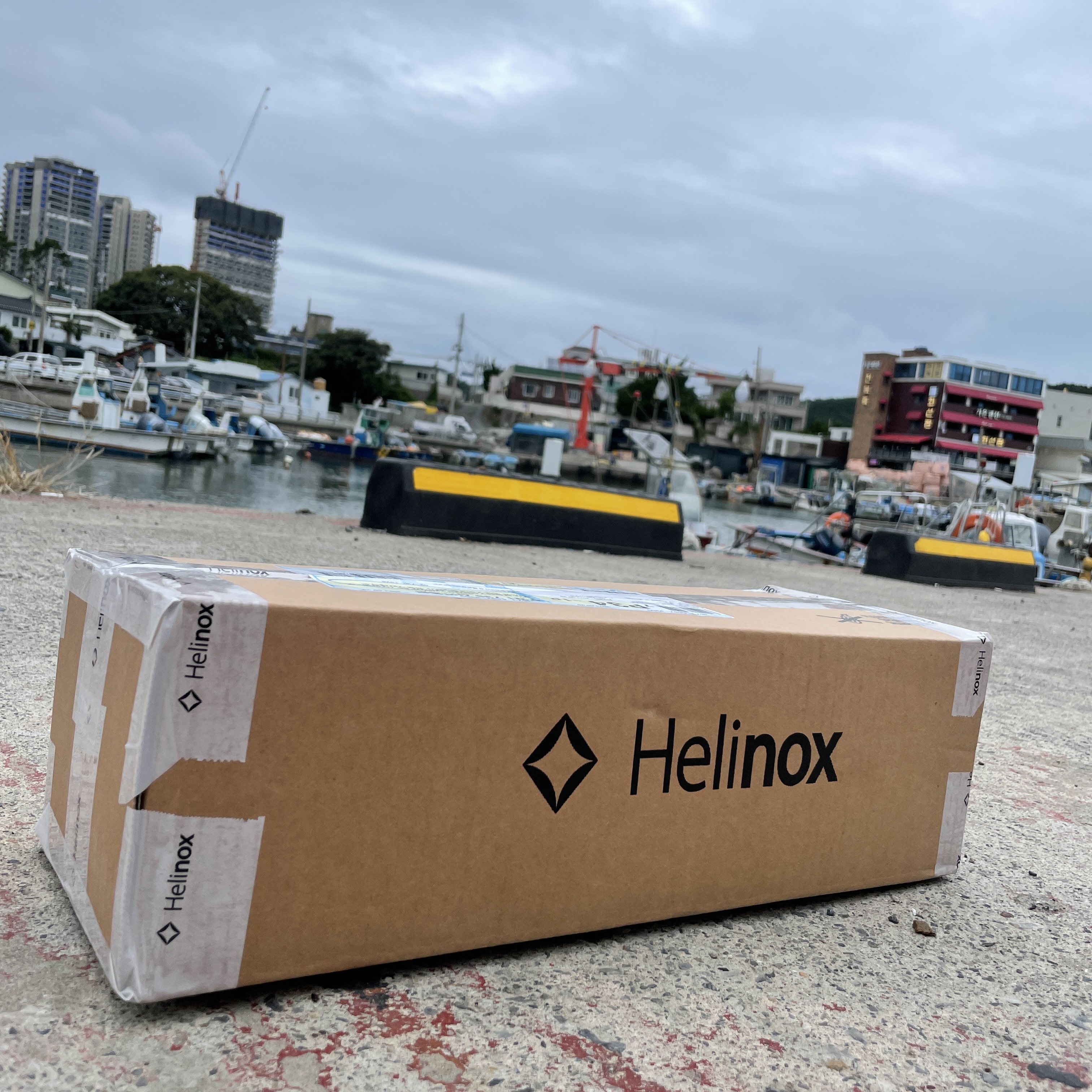 멋진 헬리녹스 테이프와 박스. 그 속에는 헬리녹스 선셋 체어가 있습니다.