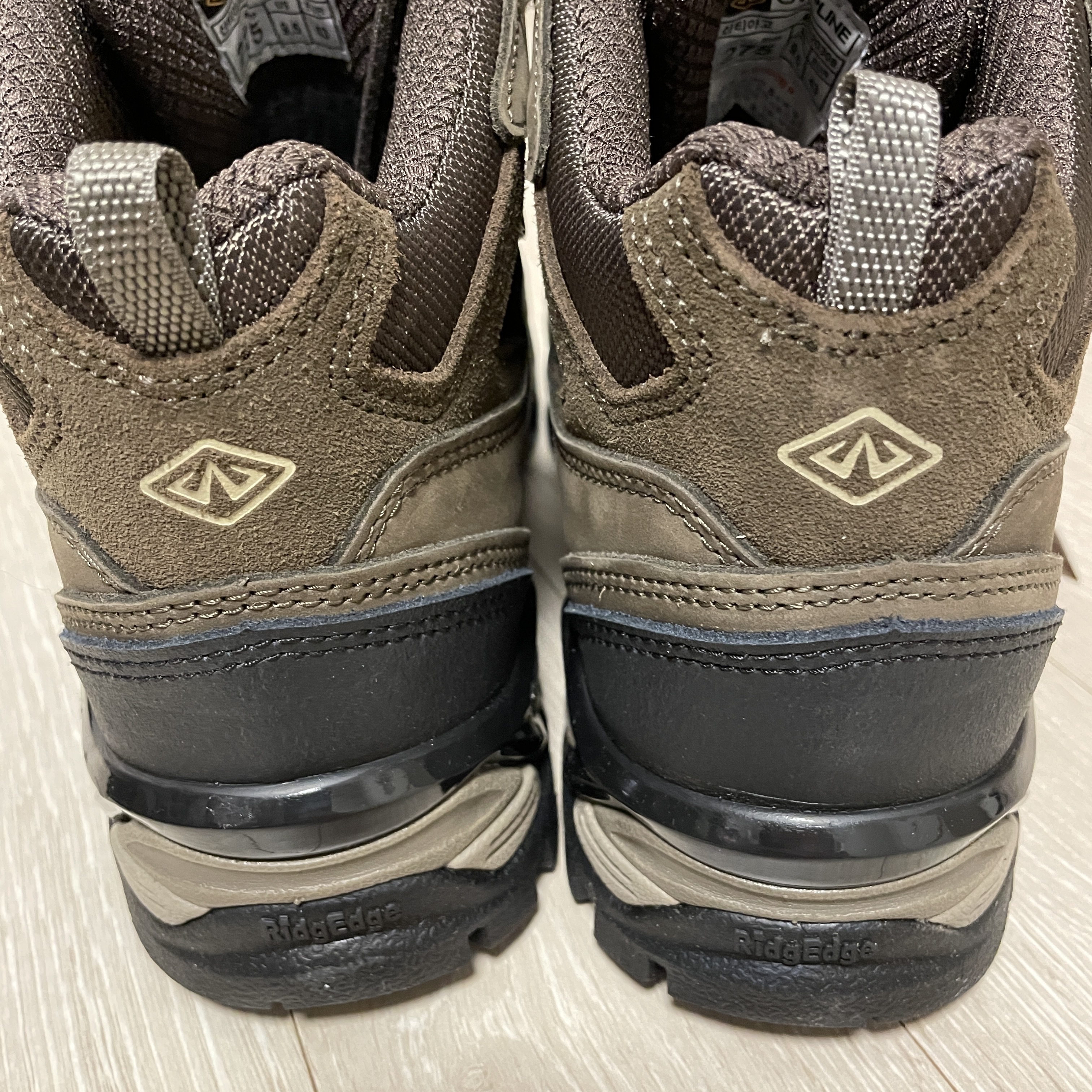 신발 뒤편에는 캠프라인 로고와 깔창 뒤에 릿지엣지가 양각으로 새겨져 있네요.