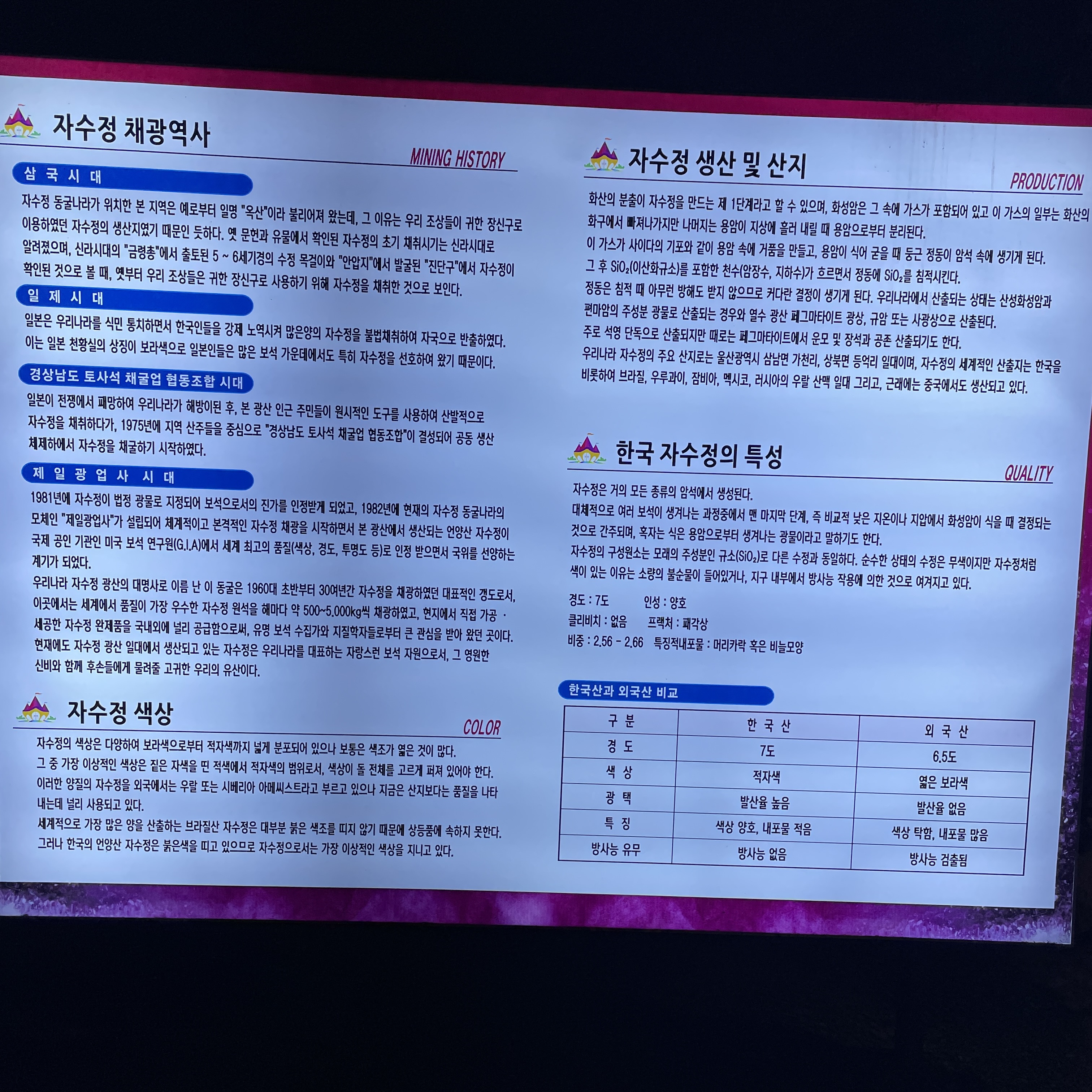 자수정 동굴에 왔으니, 자수정에 대해서는 알고 싶었습니다.