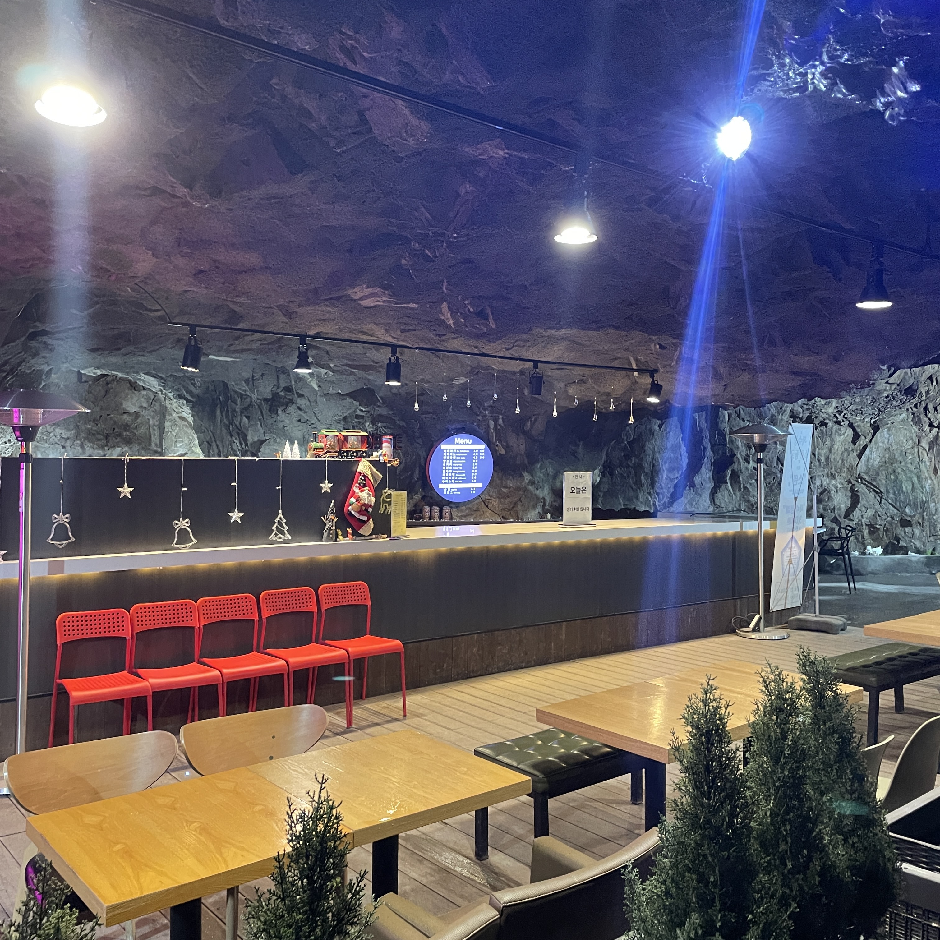 카페도 있고, 여러 가지 LED조명이 설치되어 있어서 무섭다는 느낌보다는 동굴 컨셉 클럽?? 같다는 느낌이 들었습니다.